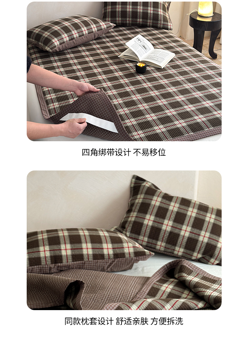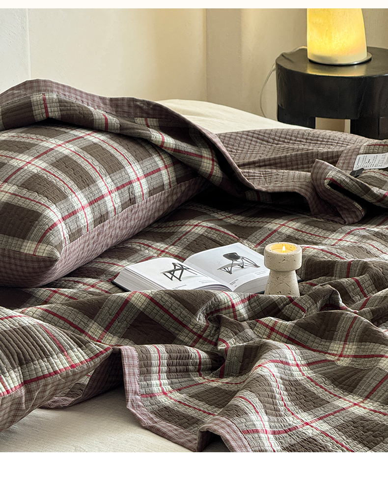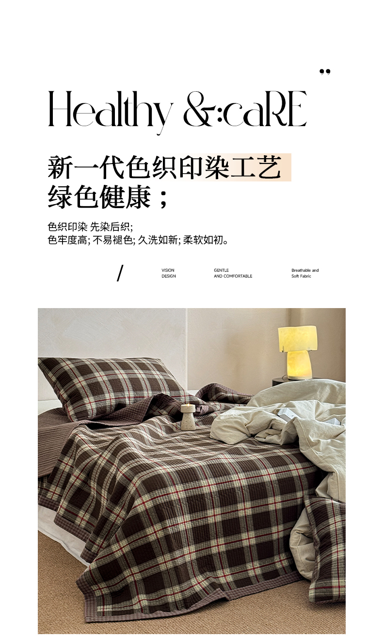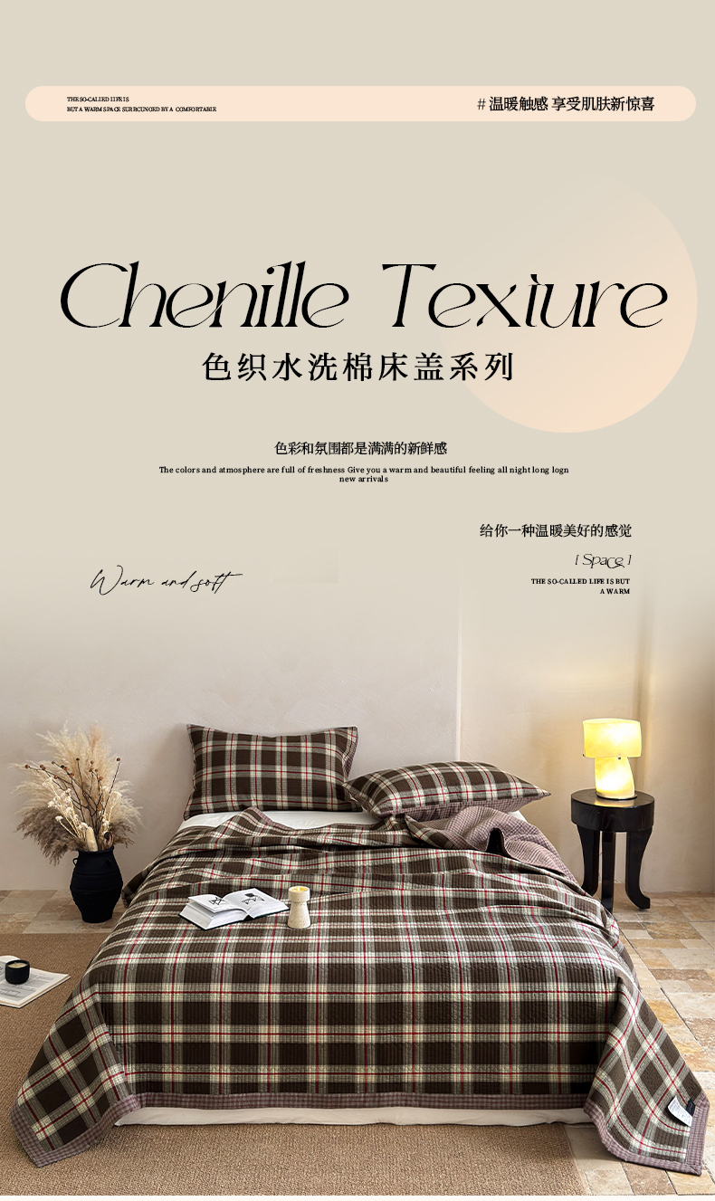 法芙娜家纺 2026新款双面全棉色织水洗棉床盖 咖格
