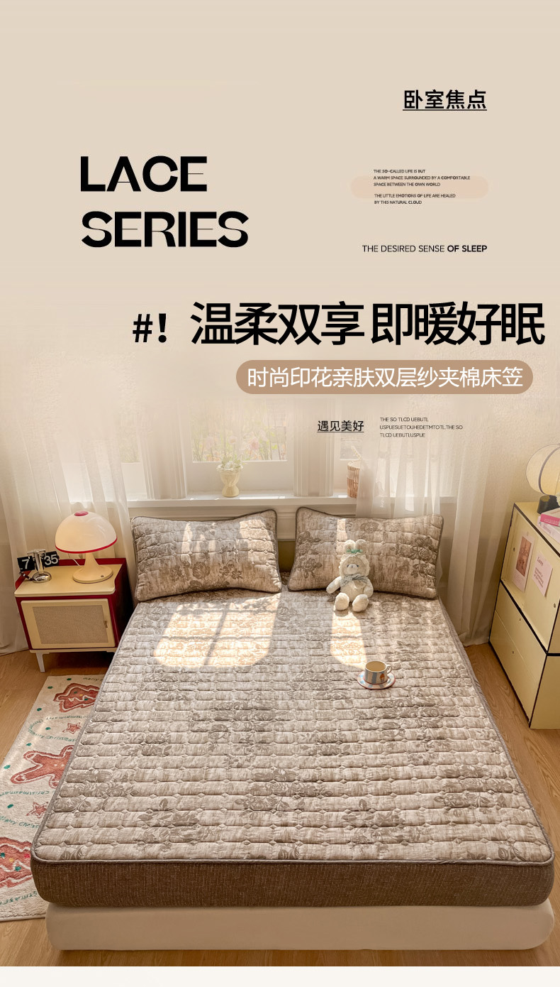 (总)沐慕 2026新款高克重印花云感皱皱纱夹棉床笠,回忆蝶,枯木生花,蜡笔没有新,奶油块块,甜品猫星球,甜心小狗粉,雾漫春日,小猫时光蓝