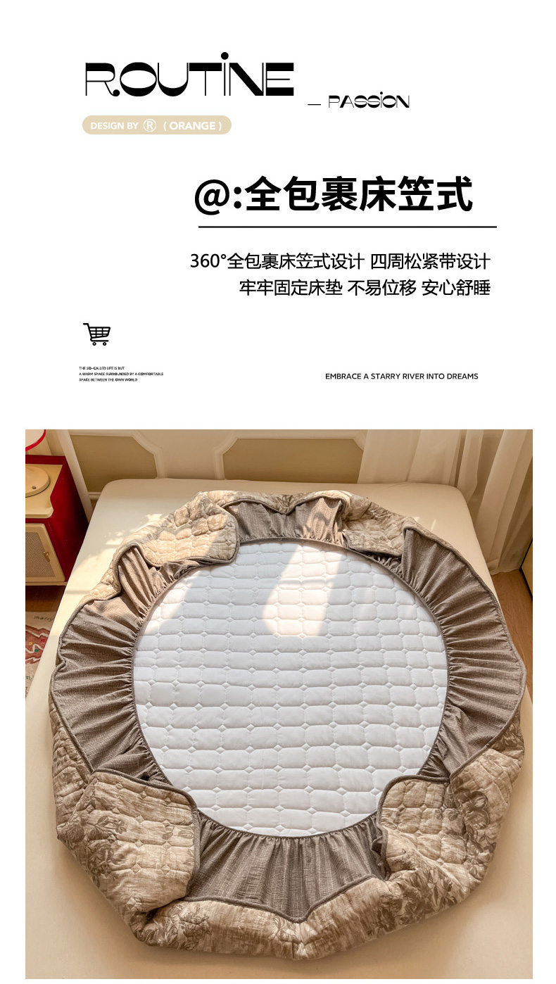 沐慕 2026新款高克重印花云感皱皱纱夹棉床笠 枯木生花