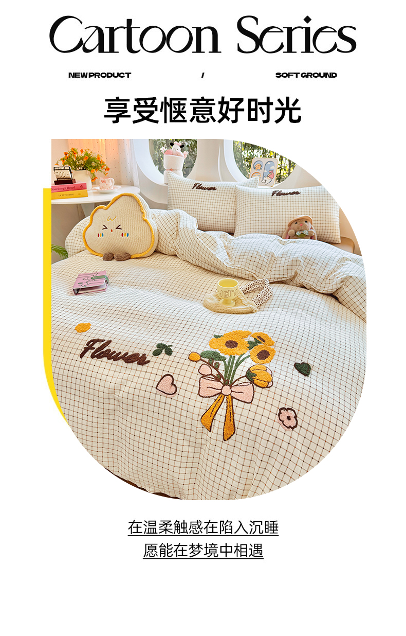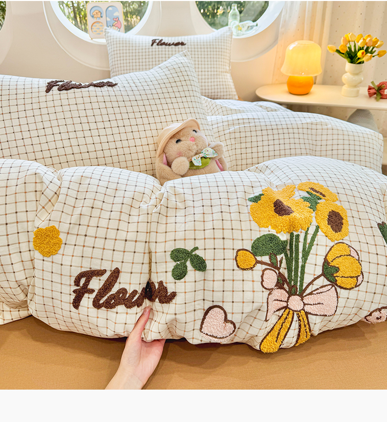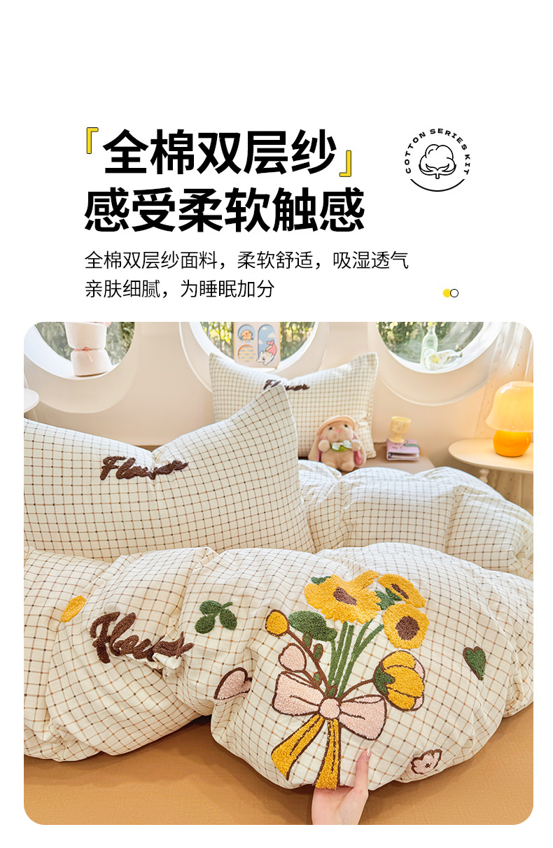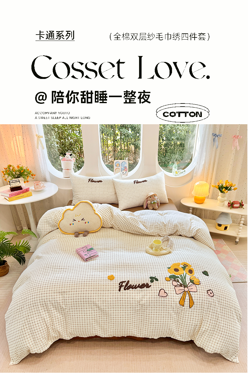 当前位置: 91家纺网 > 商品网购 > 床品套件 > 四件套 > 双层纱四件套 > 爱思佳 2026新款双层纱印+毛巾绣系列四件套 向阳花