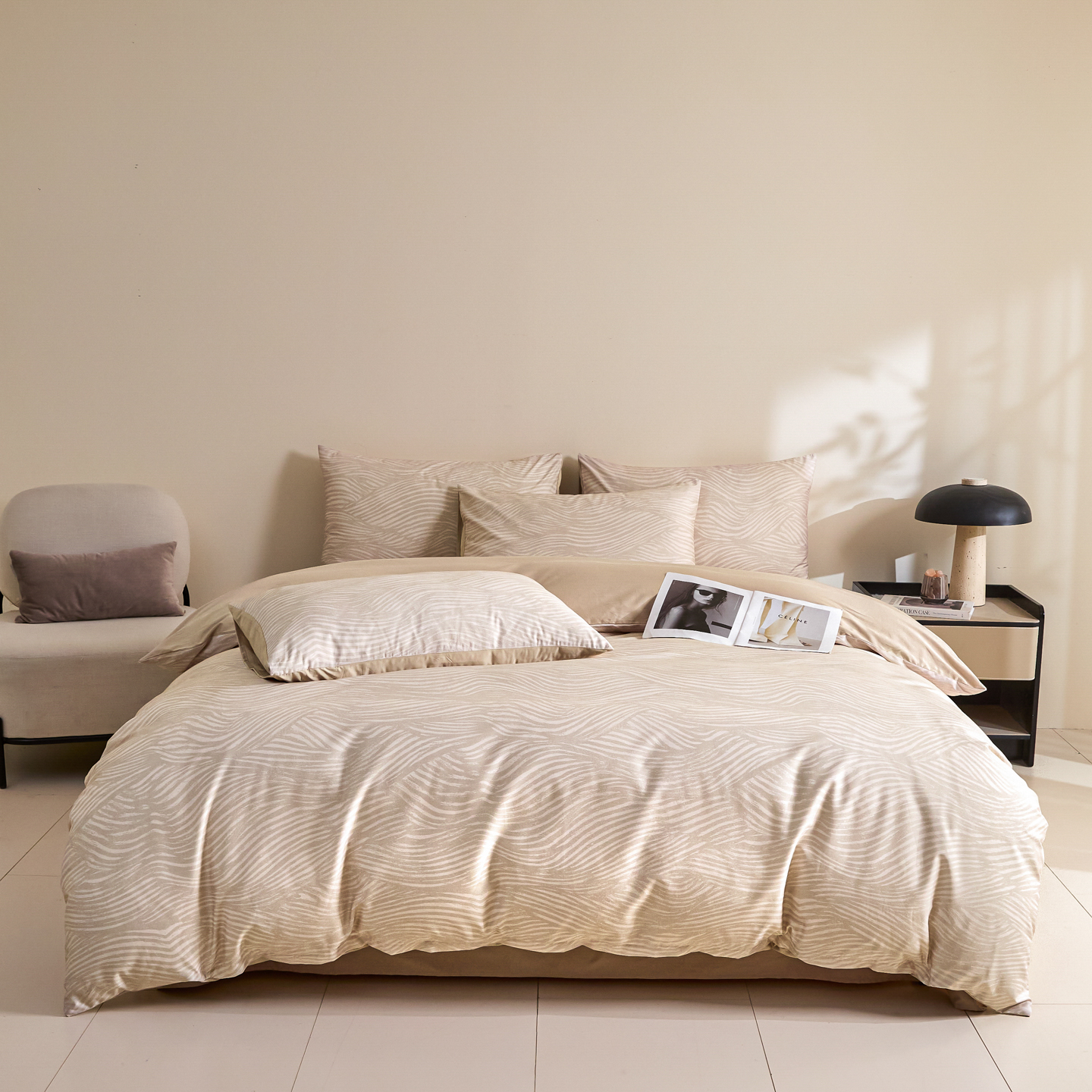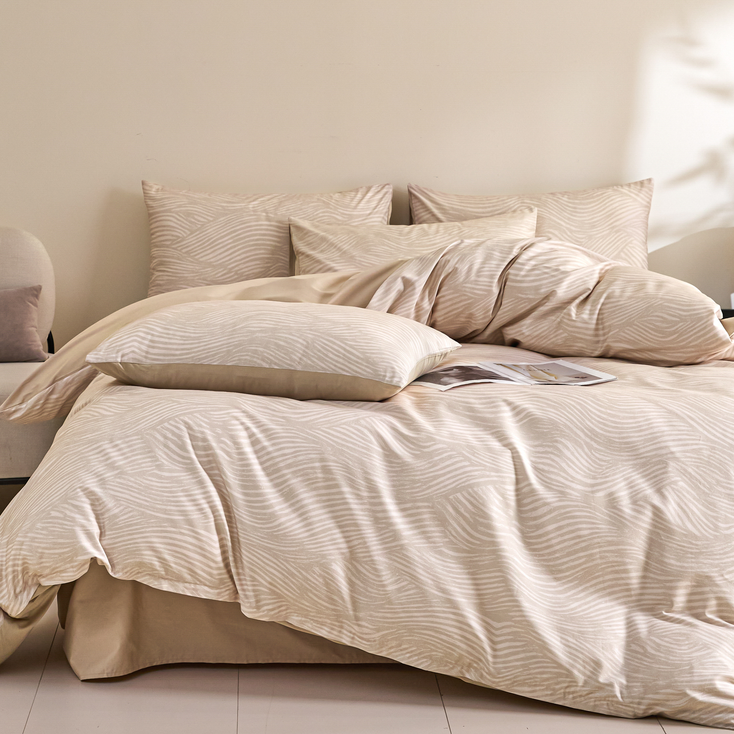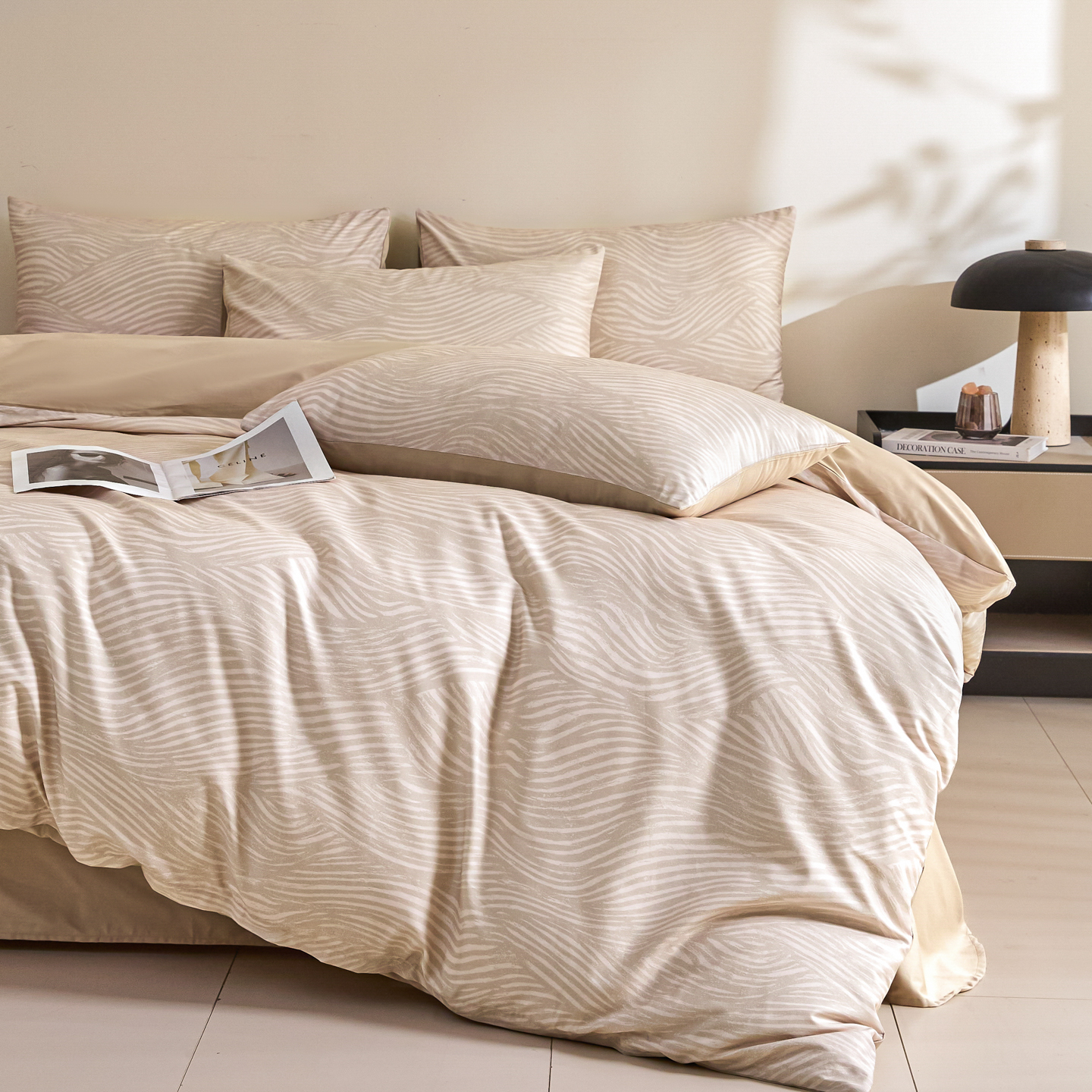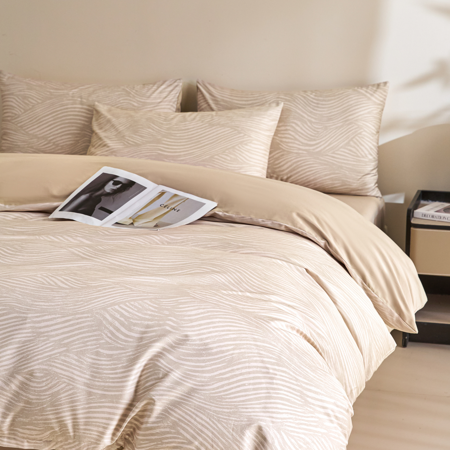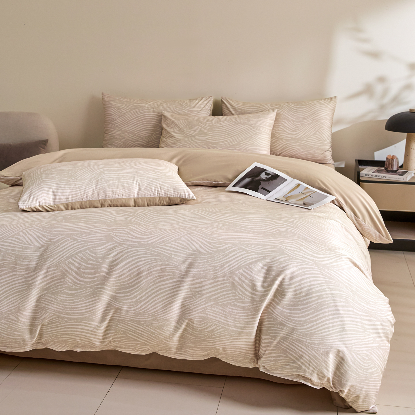 商品名称:新方向 2026新款数码印花50s双股全棉贡缎长绒棉四件套-罗马(严格控价 标准288元 加大308元) 罗马-香槟