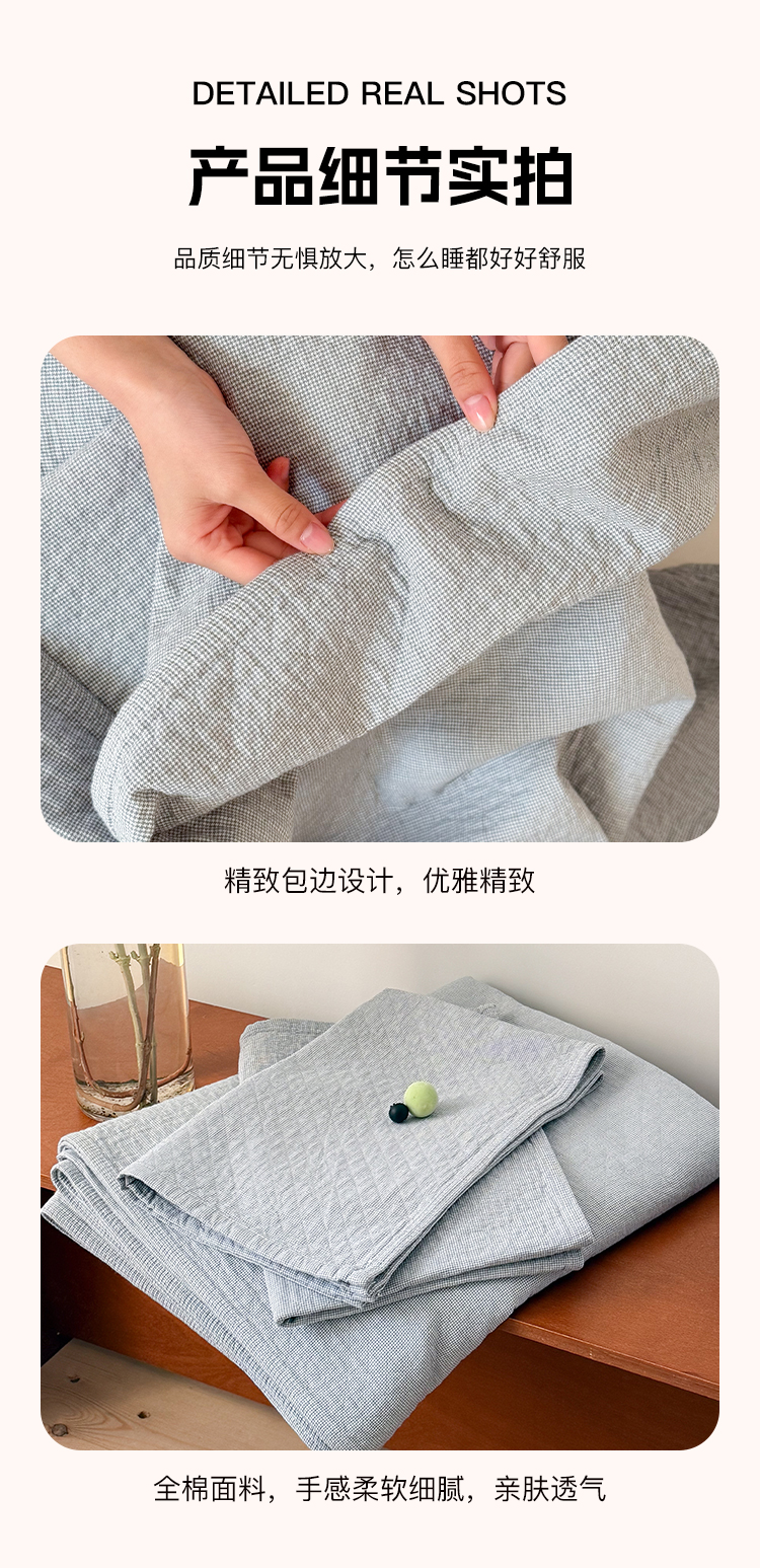 (总)沐瑟家纺 2026新款全棉四层纱布床盖-星星和心情系列,心情-粉色,心情-灰蓝,心情-卡其,星星-黄色,星星-灰色,星星-蓝色,星星-紫色,组合