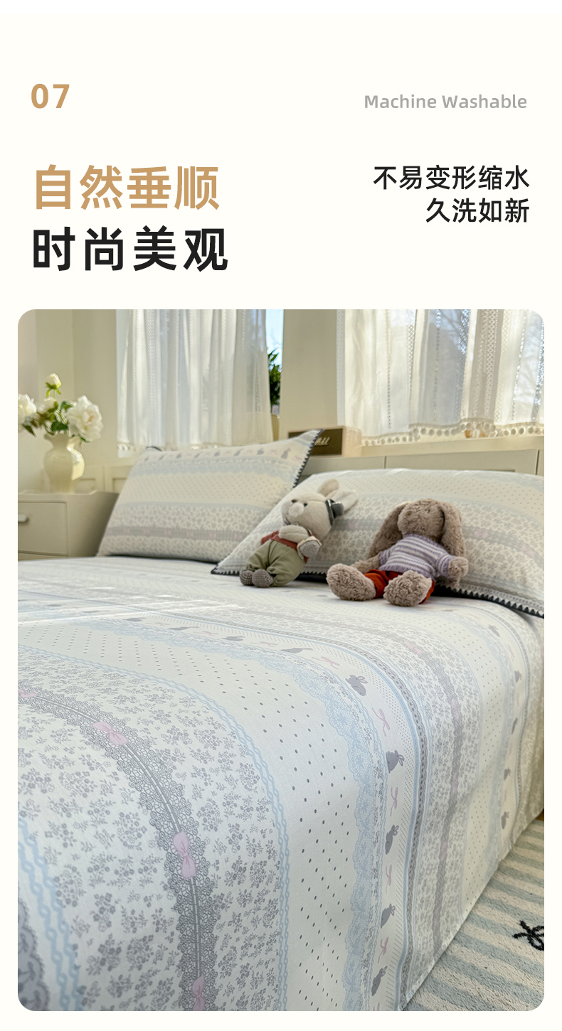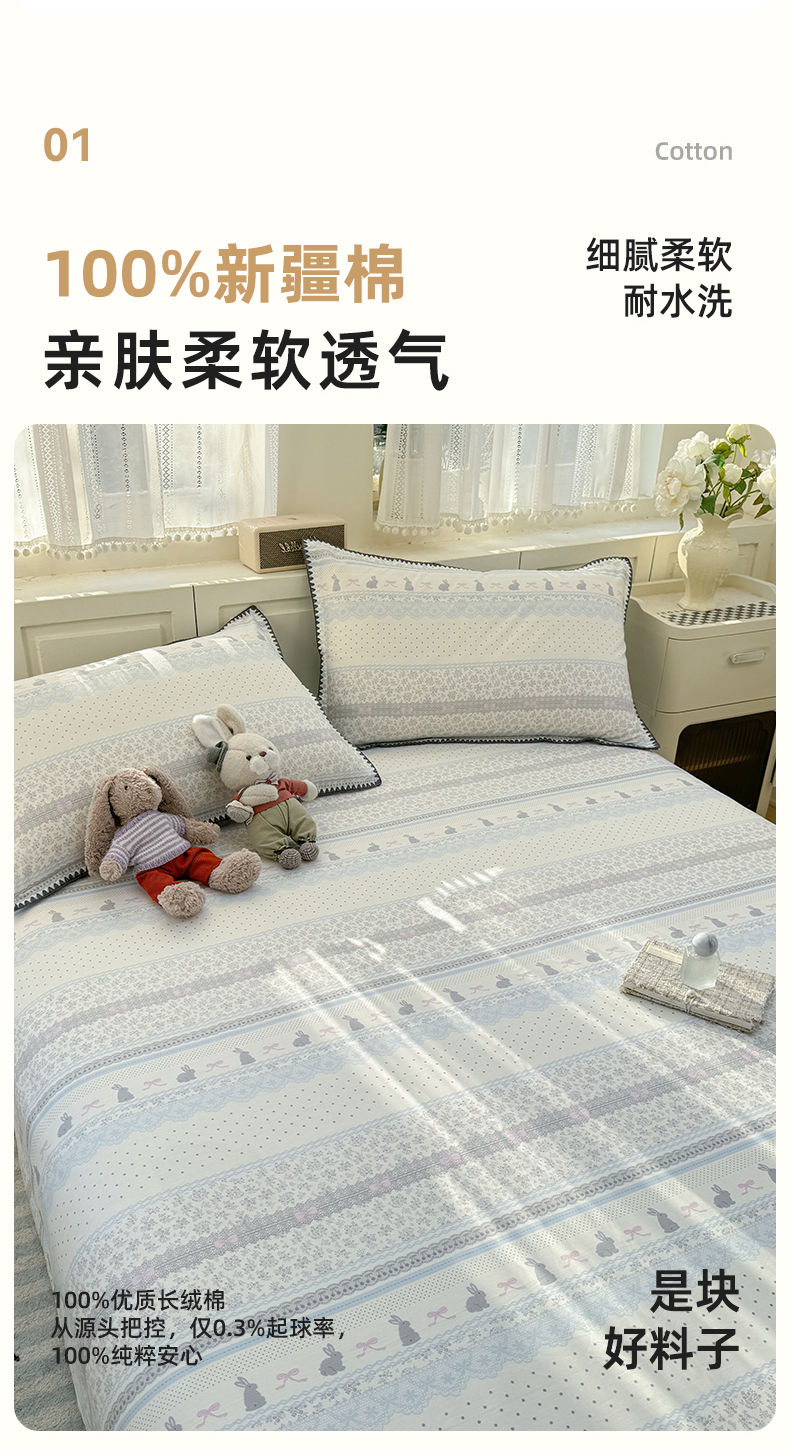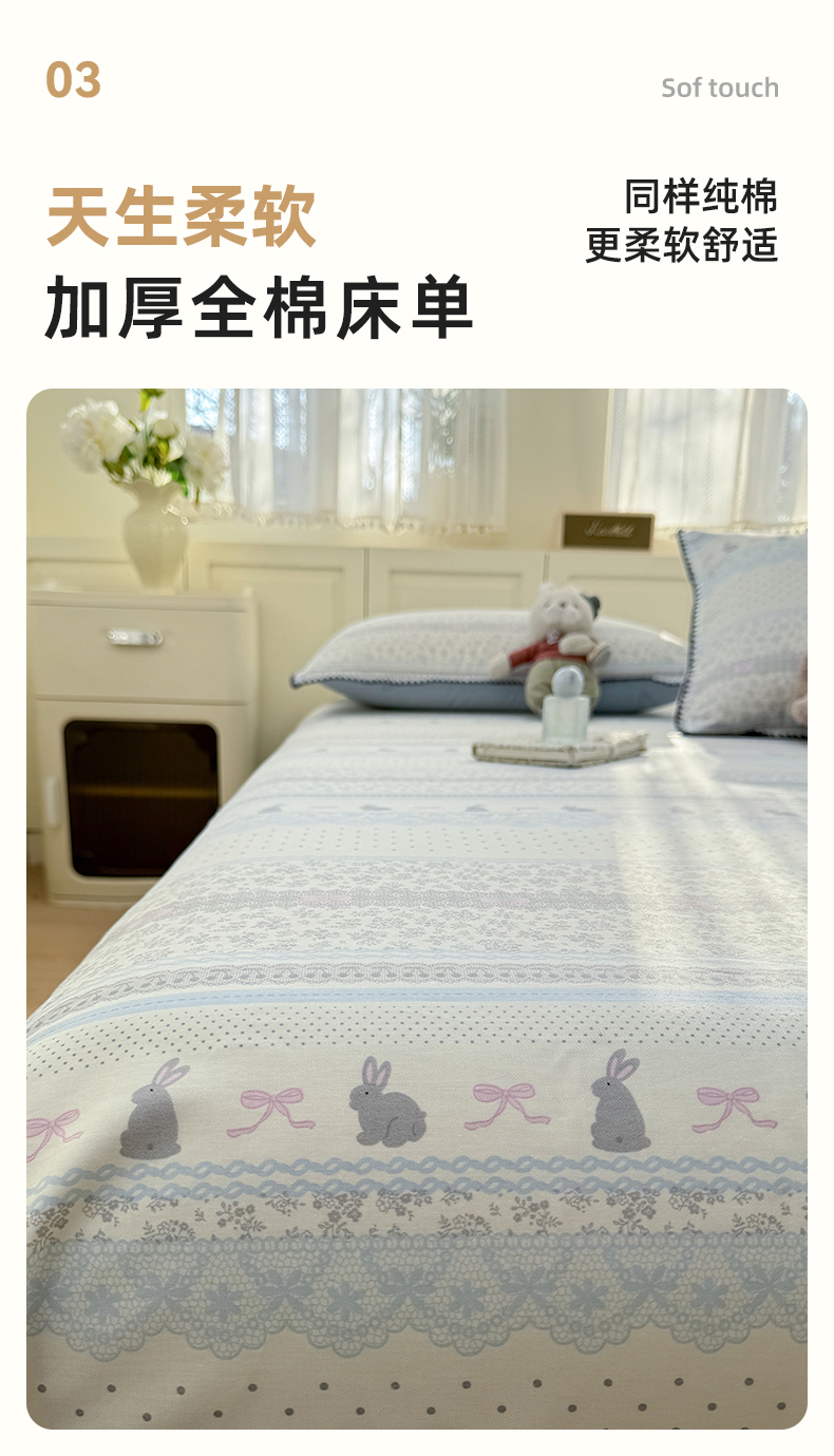 浮光家居 2026新款全棉贝壳边纯棉单床单系列2 花边兔