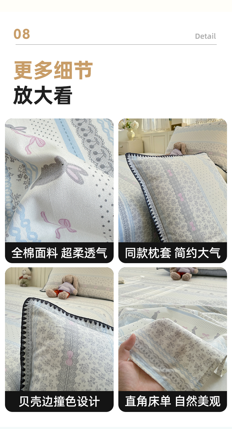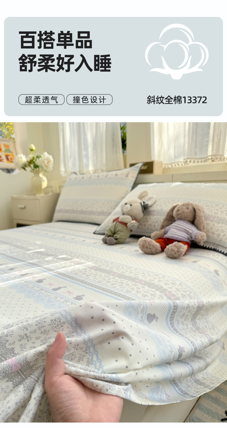 • 91家纺网 家纺一手货源 找家纺 浮光家居 2026新款全棉贝壳边纯棉单床单系列2 花边兔
