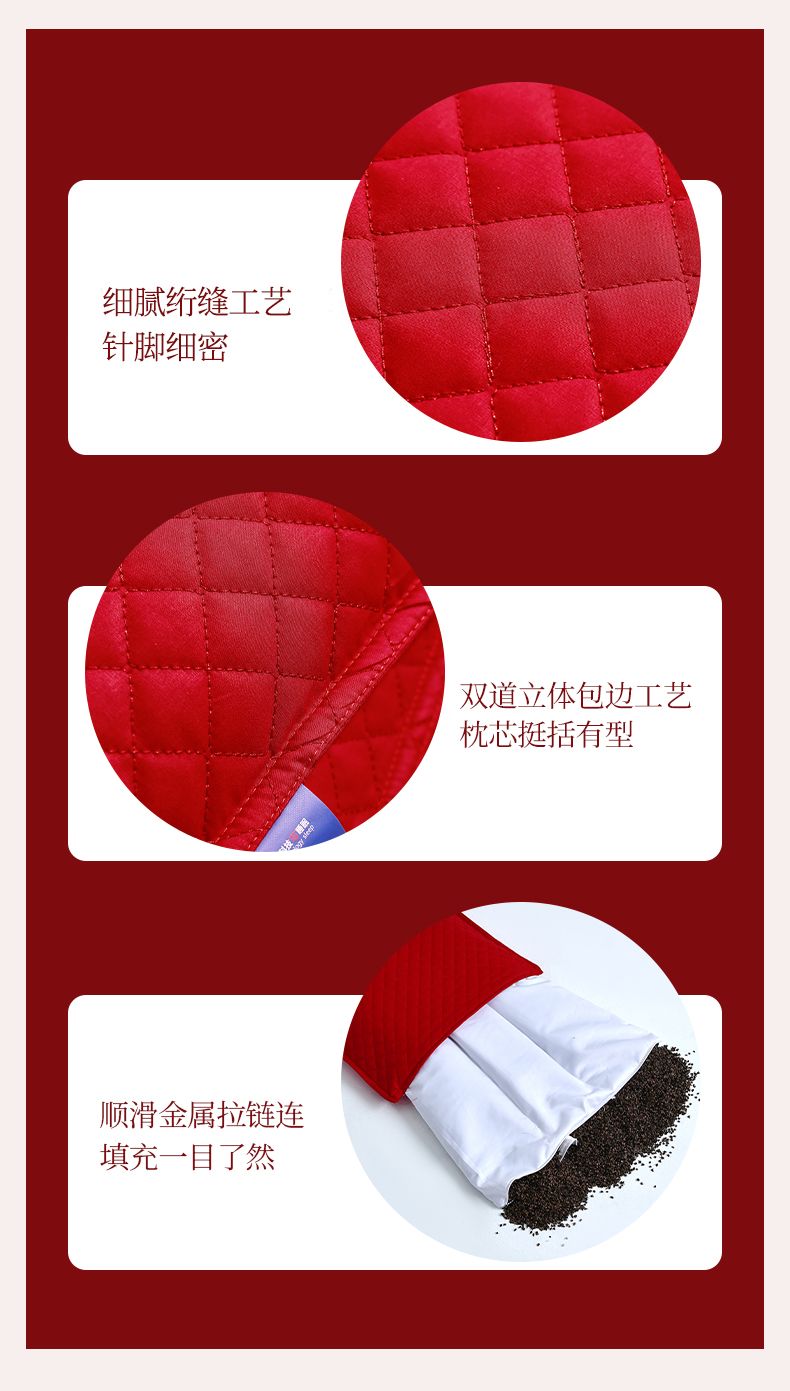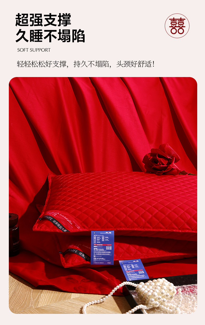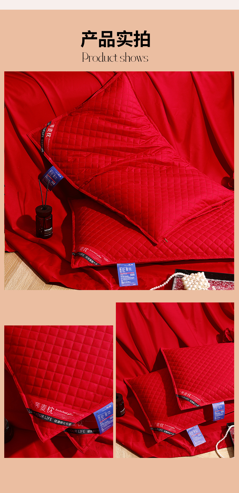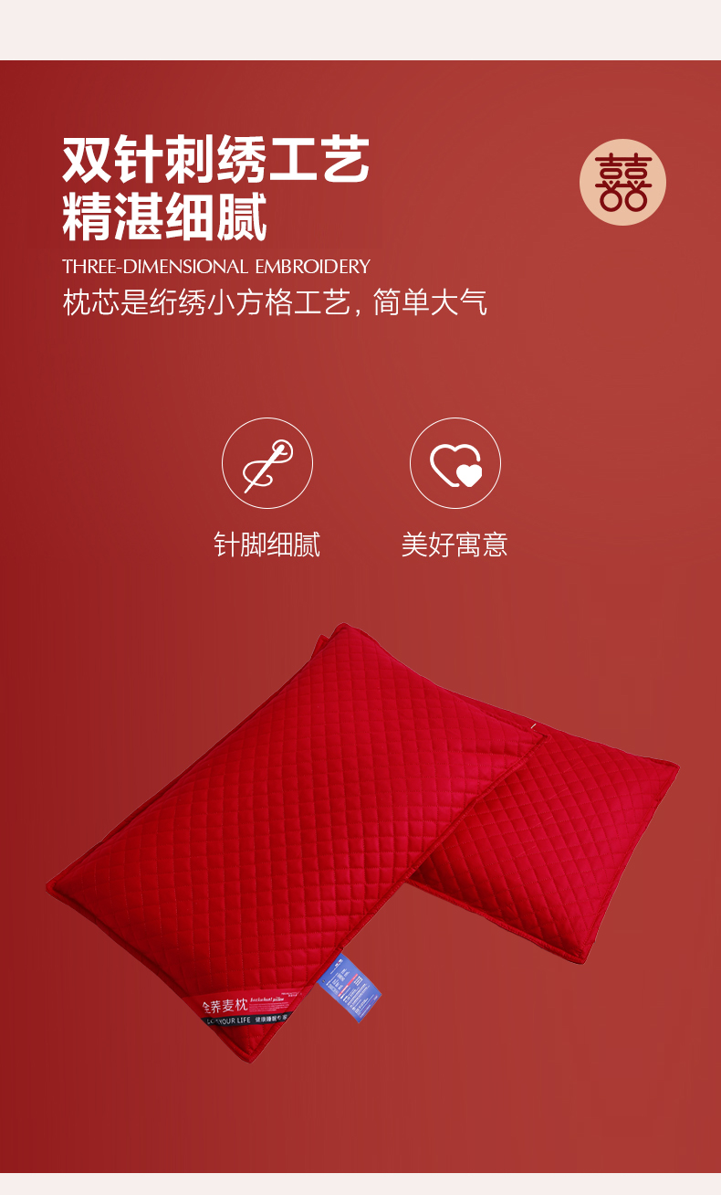 商品名称:(总)糖果枕芯 2026新款经典爆款全棉天然绗绣小方格大红婚庆全荞麦护颈枕保健枕头枕芯