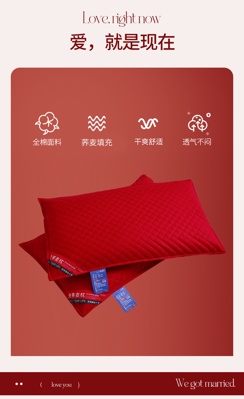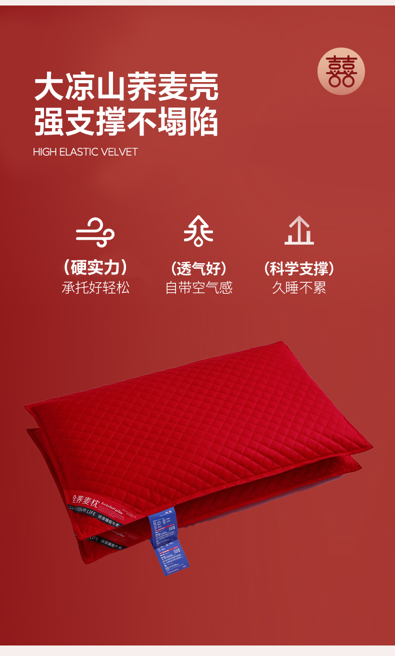 (总)2025新款大红全荞麦婚庆枕头喜庆强支撑调理颈部随礼送新人好物,大红两小无猜荞麦枕【48*74cm】