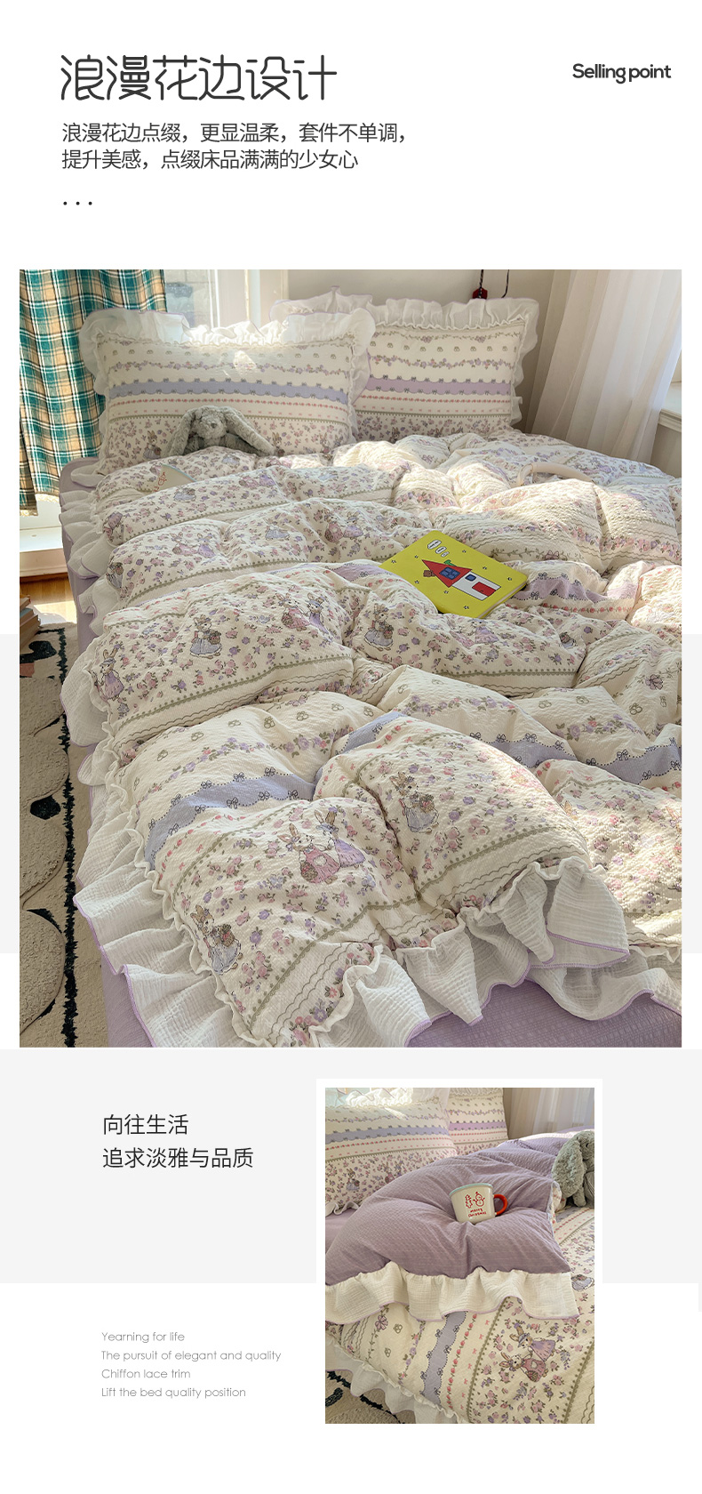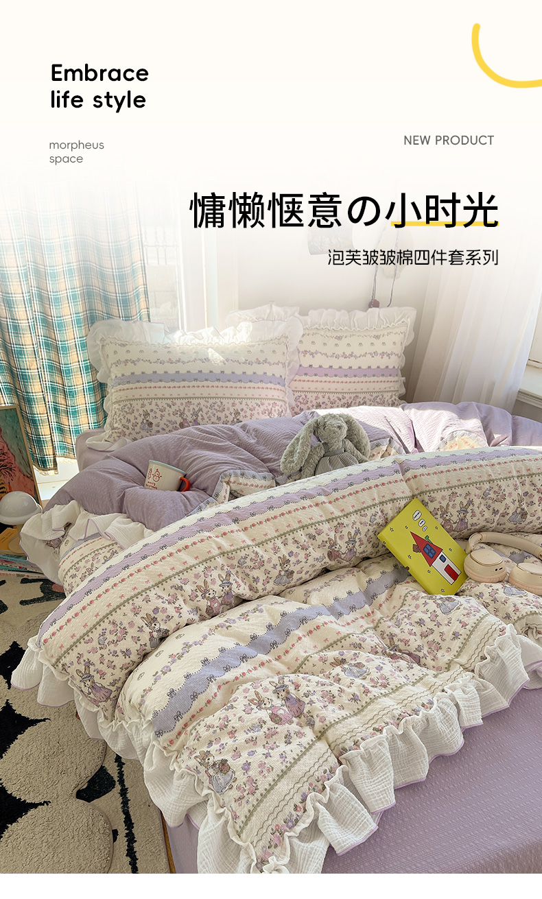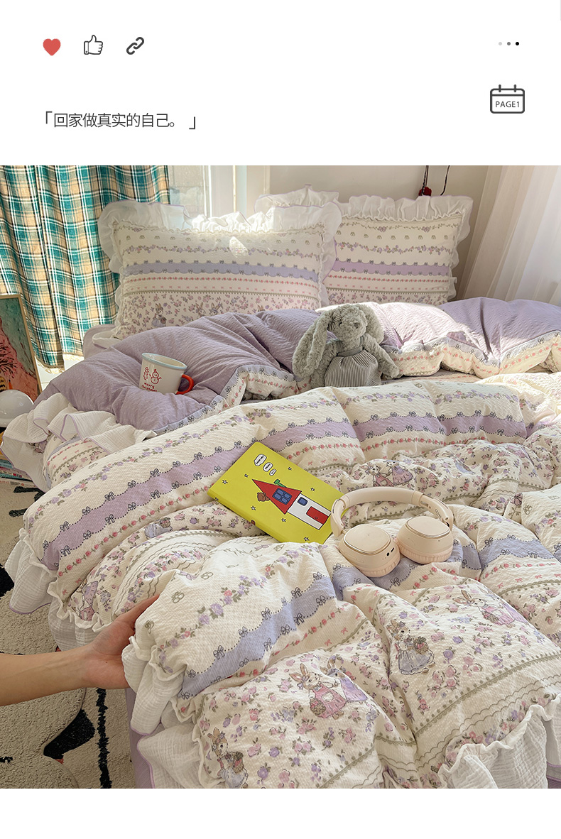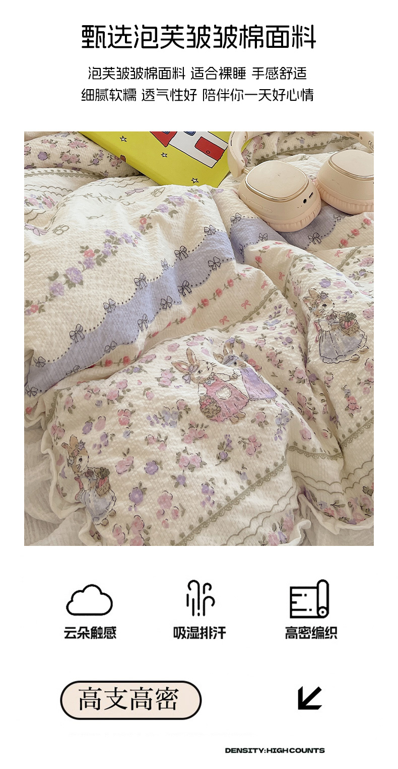 当前位置: 91家纺网 > 商品网购 > 床品套件 > 四件套 > 其它四件套 > 繁花家居 2026新款韩系花边小碎花泡芙棉云感邹邹纱费尔岛风四件套 春日温柔