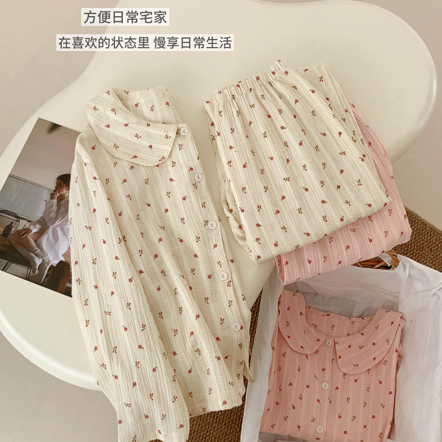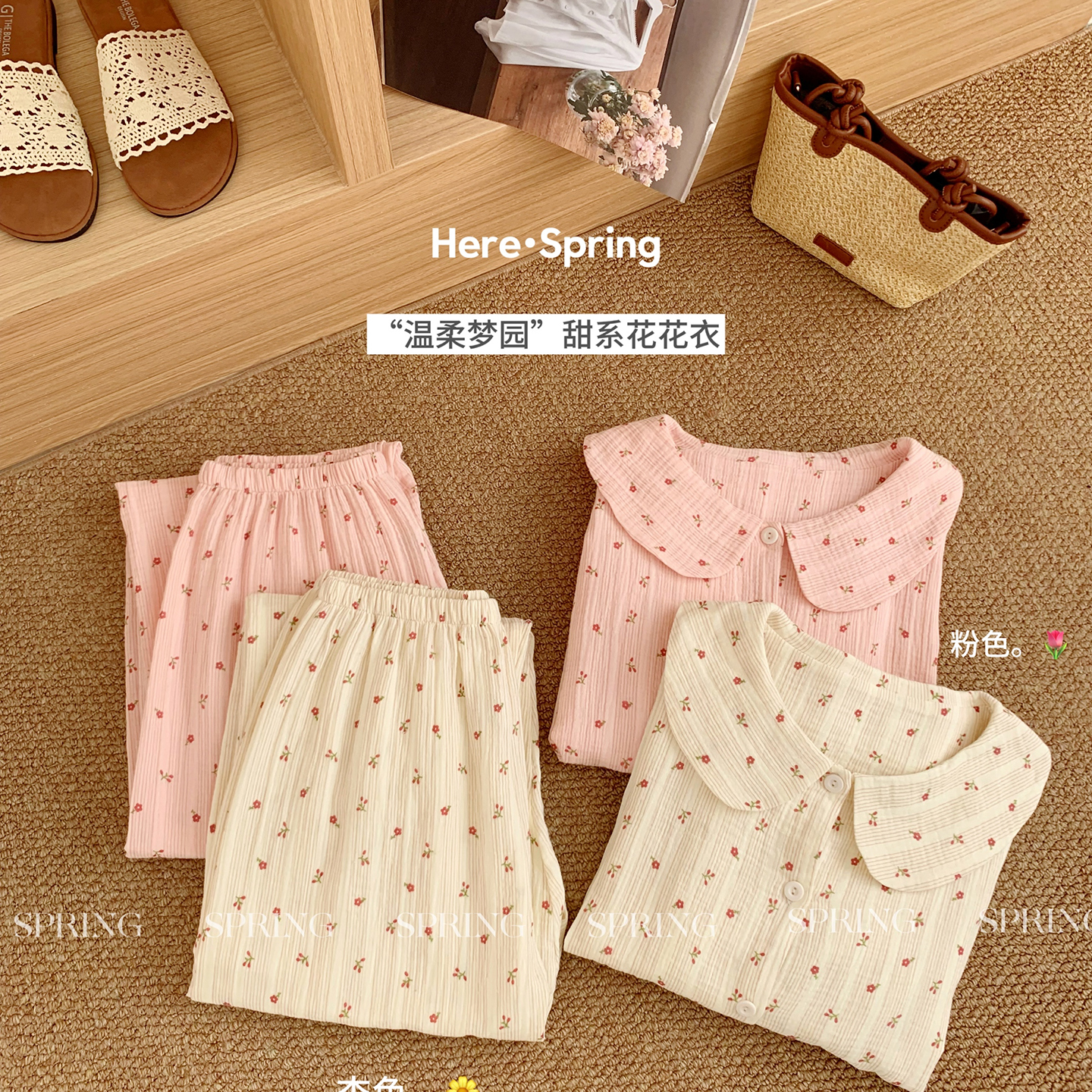当前位置: 91家纺网 > 商品网购 > 居家日用 > 睡衣/家居服套装 > 妍景家居生活馆 2026新款梦园甜系花花衣 组合图