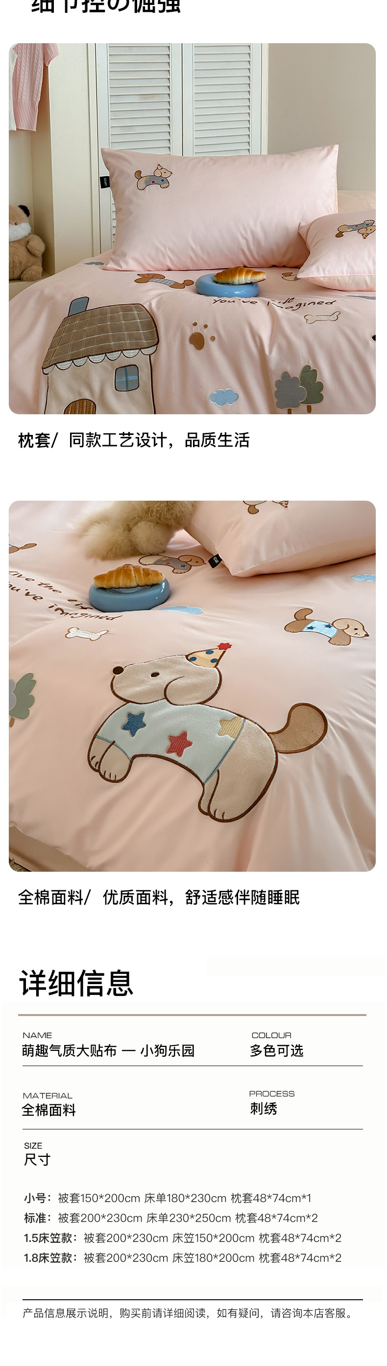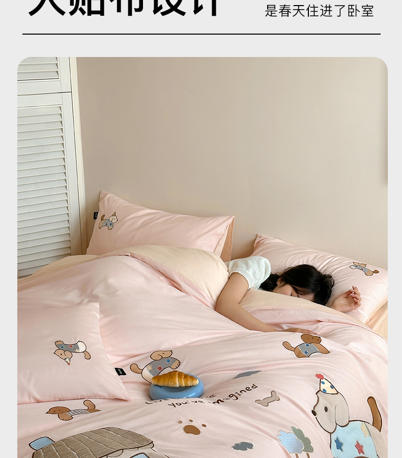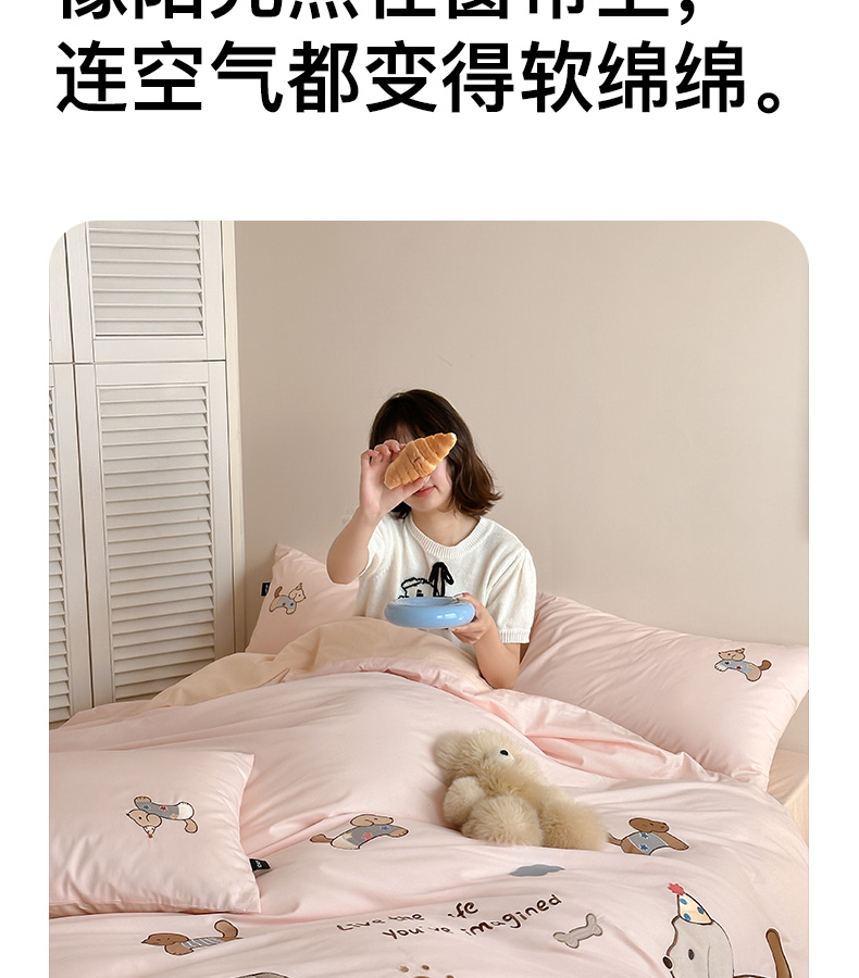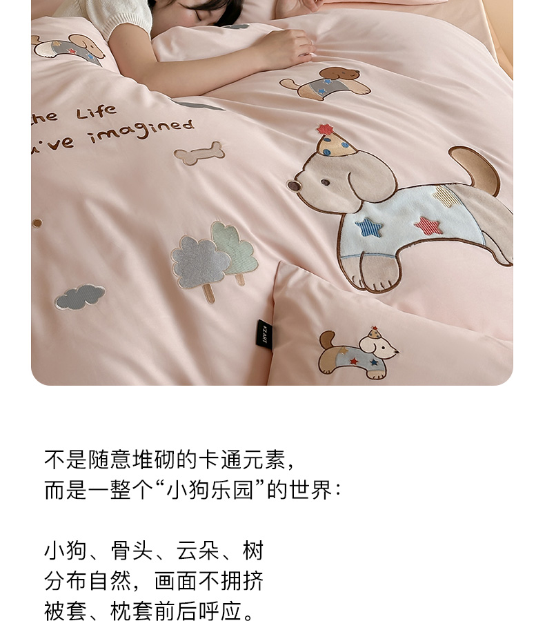 商品名称:卡姿家纺 2026春夏萌趣气质大贴布 — 小狗乐园 小狗乐园粉