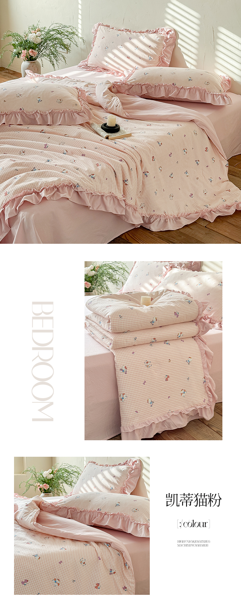 (总)迷尚家居 2026新款云朵棉印花花边夏被四件套,巴黎春天,车厘子,搞怪兔,格纹小熊,狗狗家族,蝴蝶结咖,简韵,凯蒂猫粉,凯蒂猫咖,南烟,七分甜,软萌兔蓝,甜桔,午后时光,惜花,线条猫,小柠檬,星星人,知否