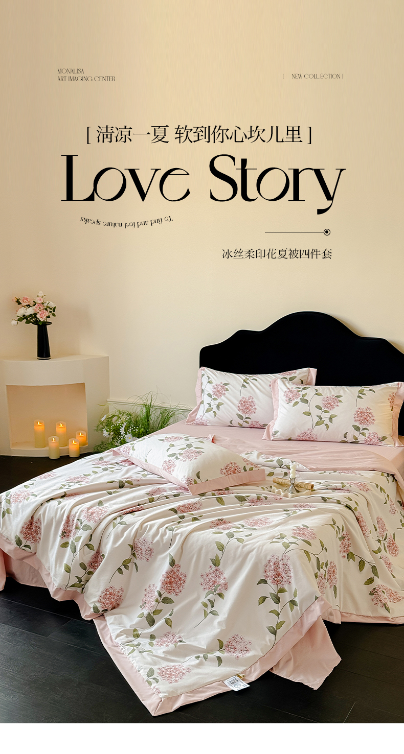 (总)迷尚家居 2026新款冰丝柔夏被四件套,安妮,丛草集,丹青,等风来,花田兔粉,花田兔紫,开心熊,凯西亚,绿野,莫奈花园,南乔,盛夏,水韵紫,松香,未央,绣球,伊利莎,郁金香绿,郁梦蓝,云兮