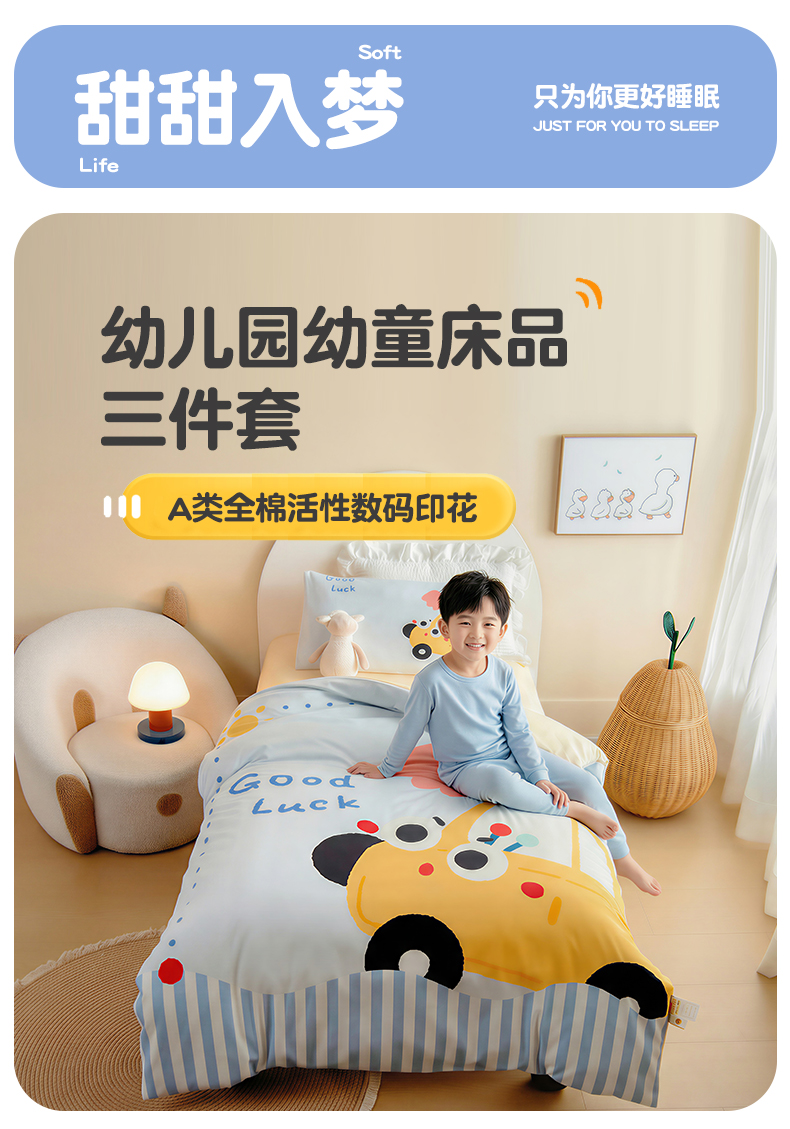 商品名称:绒梦里 2026新款A类全棉纯棉卡通大版幼儿园三件套 嘟嘟小车(另垫套有60*150cm/70*150cm/80*150cm/88*168cm/80*180cm)特殊垫套尺寸的价格咨询客服微信哦!