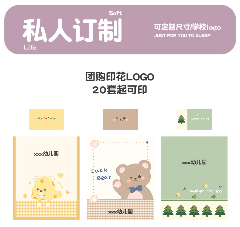 (总)绒梦里 2026新款A类全棉纯棉卡通大版幼儿园三件套(另垫套有60*150cm/70*150cm/80*150cm/88*168cm/80*180cm)特殊垫套尺寸的价格咨询客服微信哦!,波点企鹅,粉萌小兔,快乐芝士,奶茶兔兔,平安小马,俏皮恐龙,幸运树,嘟嘟小车,幸运小熊,熊猫宝贝,紫色小兔,足球宝贝,组合图(仅供展示不可下单)