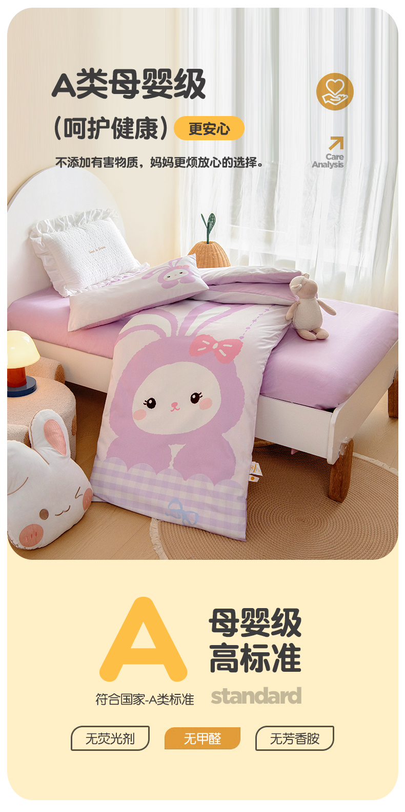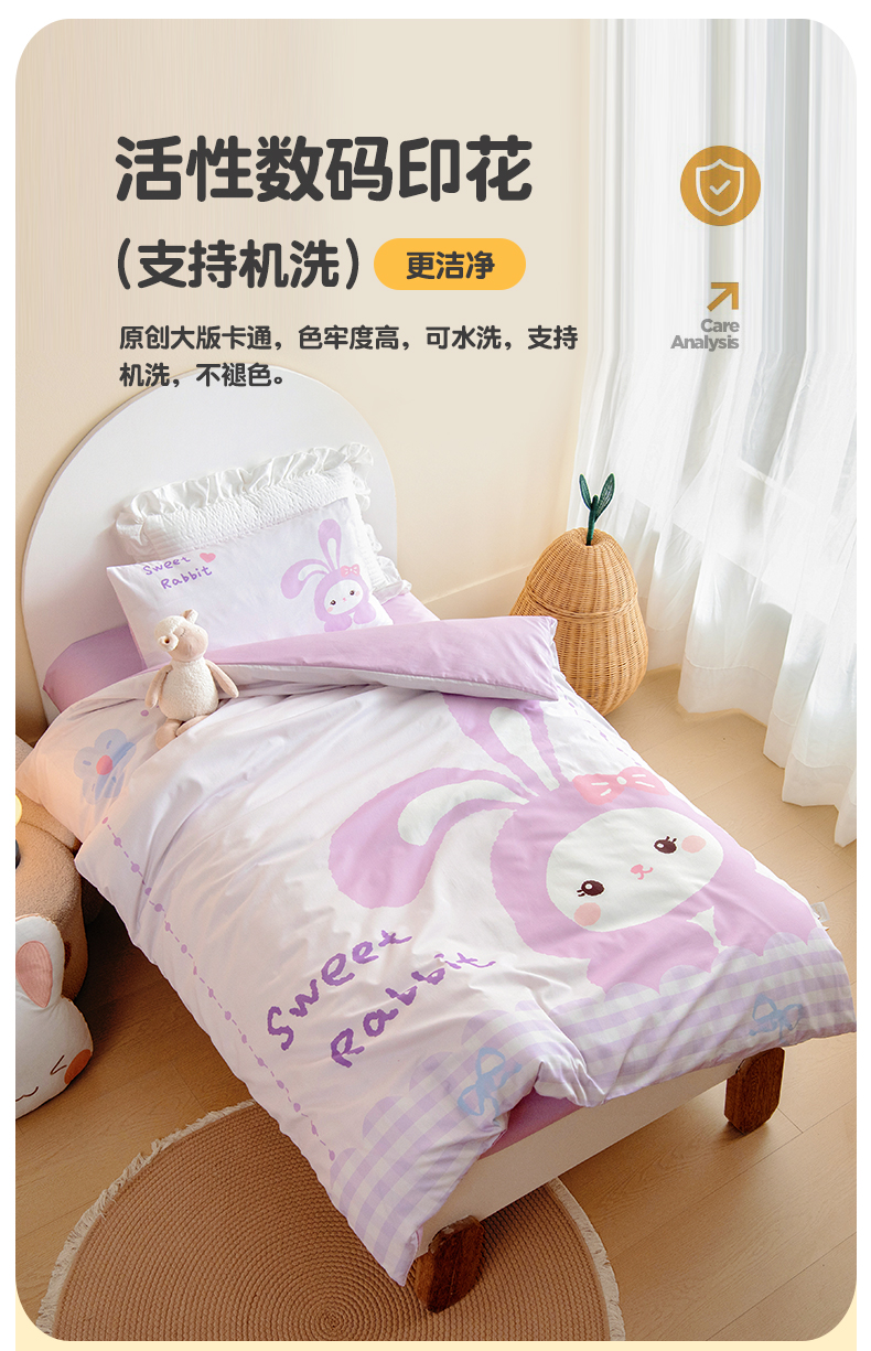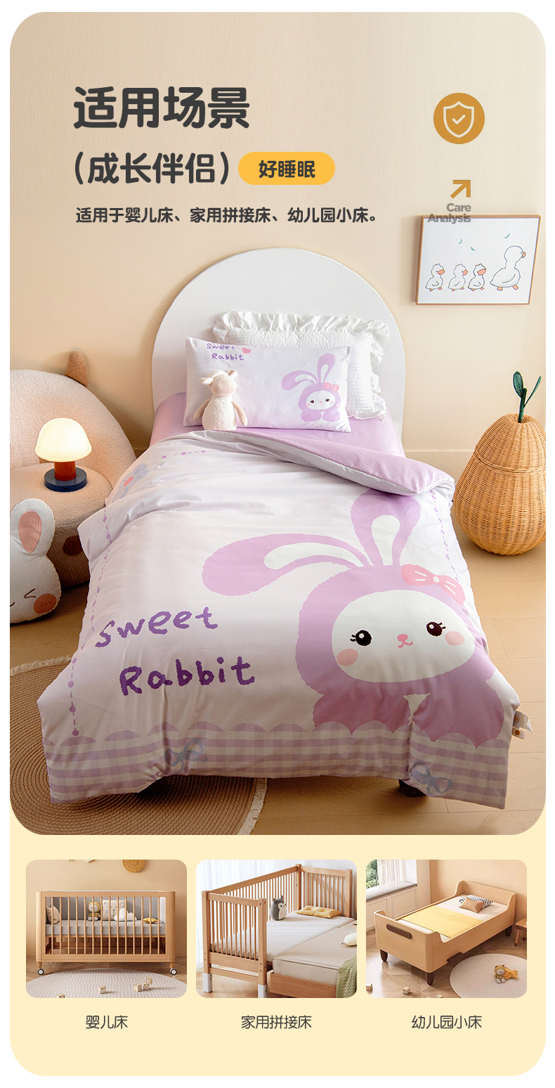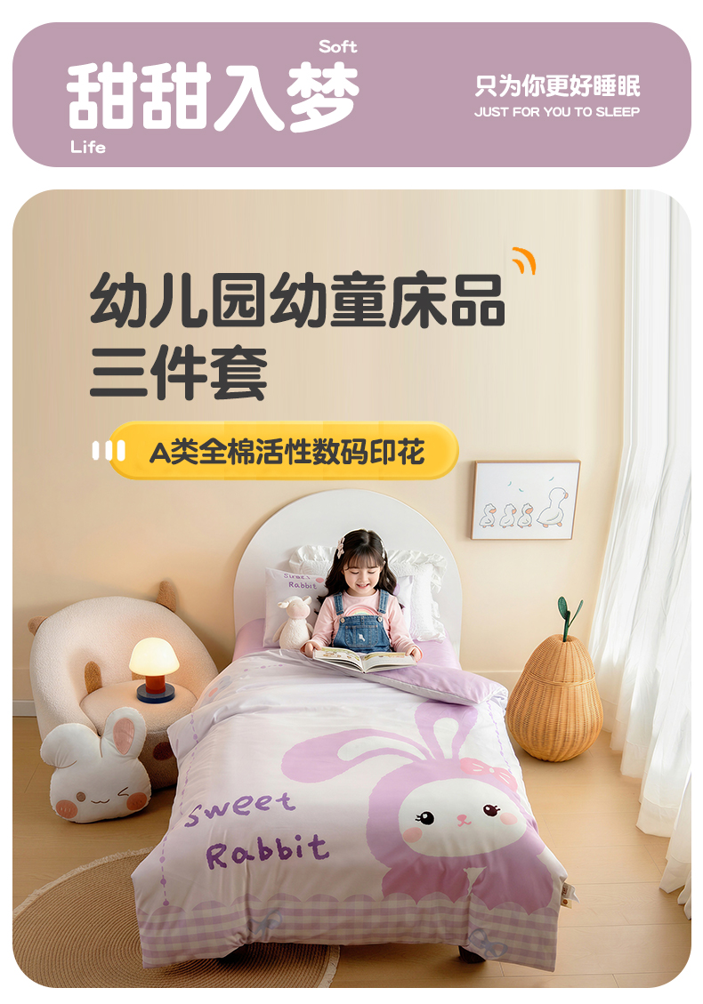 商品名称:绒梦里 2026新款A类全棉纯棉卡通大版幼儿园三件套 紫色小兔(另垫套有60*150cm/70*150cm/80*150cm/88*168cm/80*180cm)特殊垫套尺寸的价格咨询客服微信哦!