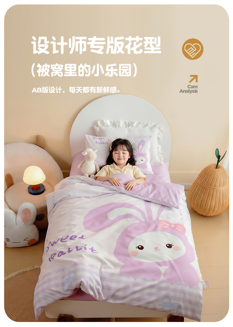 绒梦里 2026新款A类全棉纯棉卡通大版幼儿园三件套 紫色小兔(另垫套有60*150cm/70*150cm/80*150cm/88*168cm/80*180cm)特殊垫套尺寸的价格咨询客服微信哦!