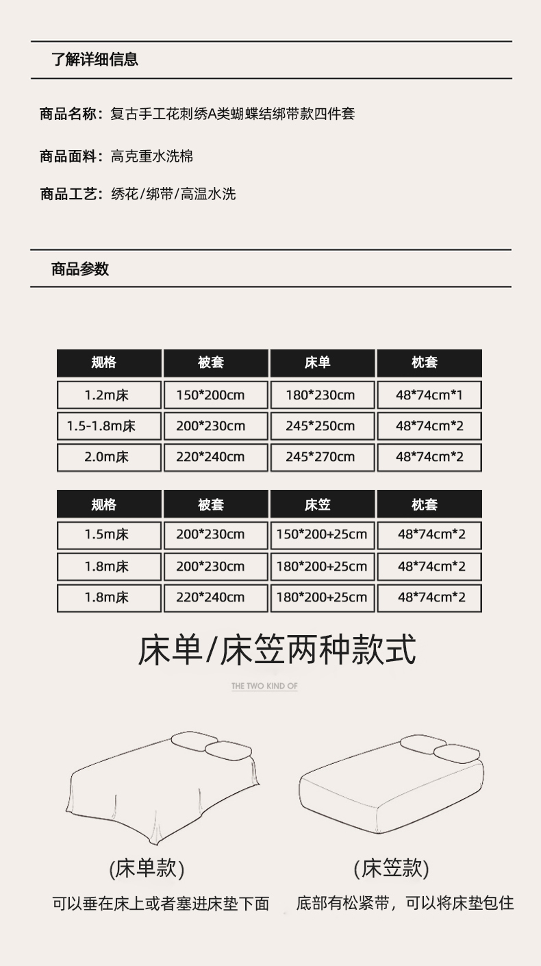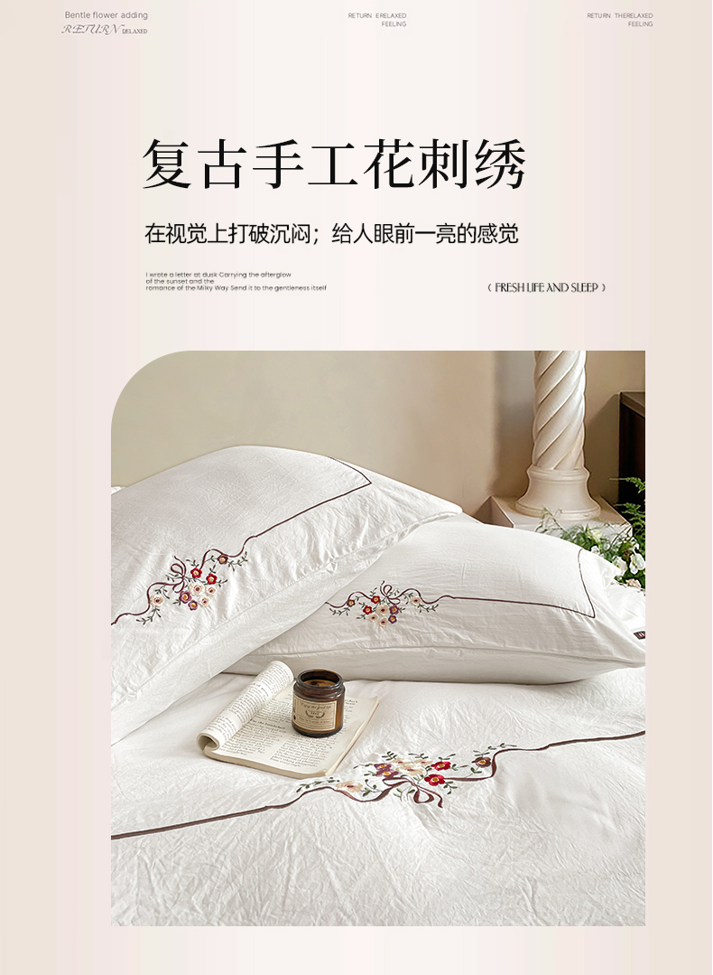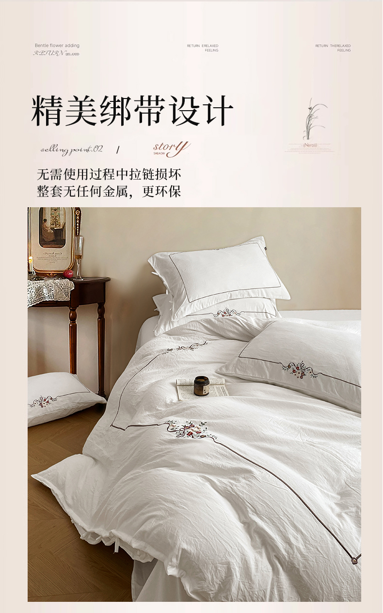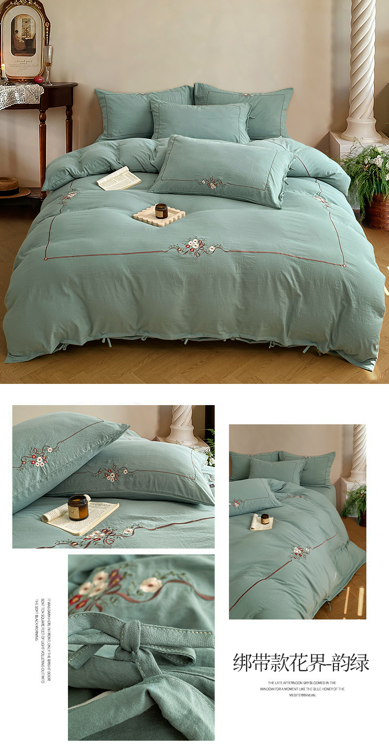 当前位置: 91家纺网 > 商品网购 > 床品套件 > 四件套 > 水洗棉四件套 > yyds网供 2026新A类高克重复古刺绣绑带款水洗棉四件套三件套-花界 实际供货价联系商家