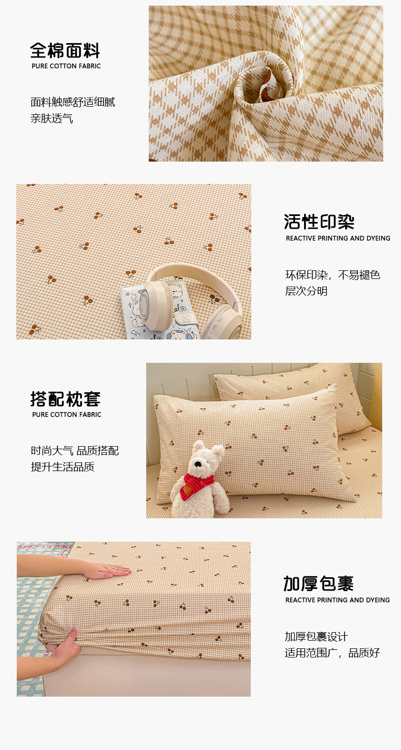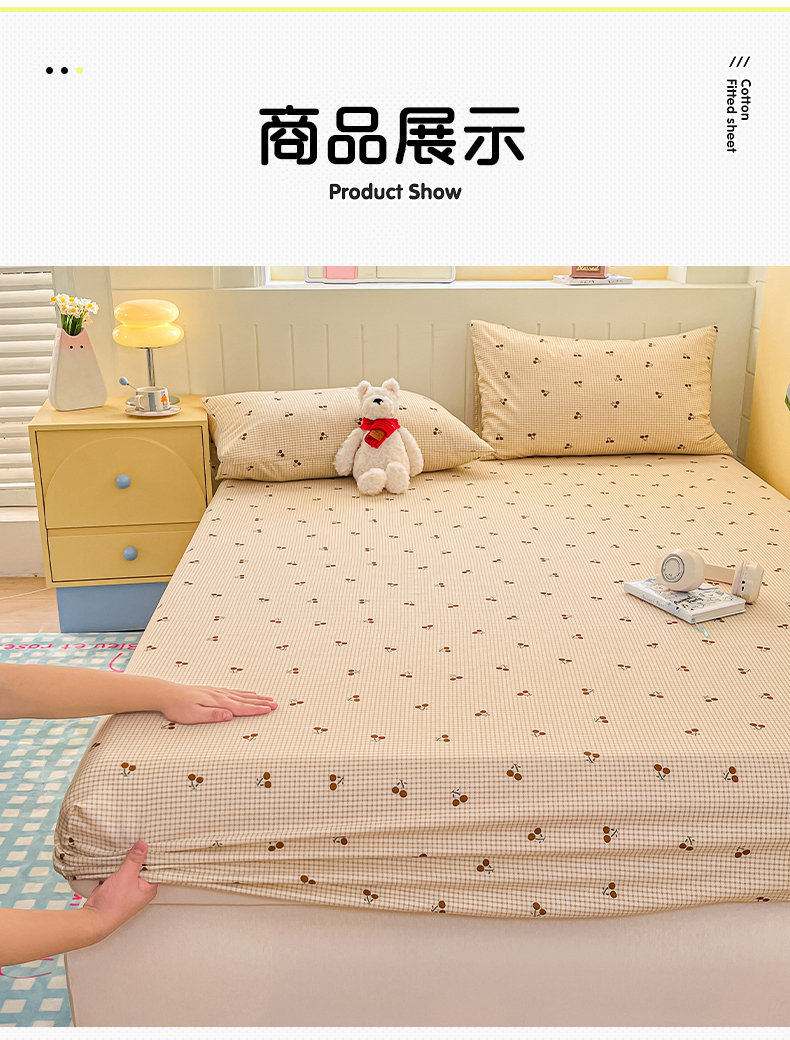 • 91家纺网 家纺一手货源 找家纺 瑞莱 2026新款纯棉全棉单品印花卡通床笠枕套系列 樱桃点点