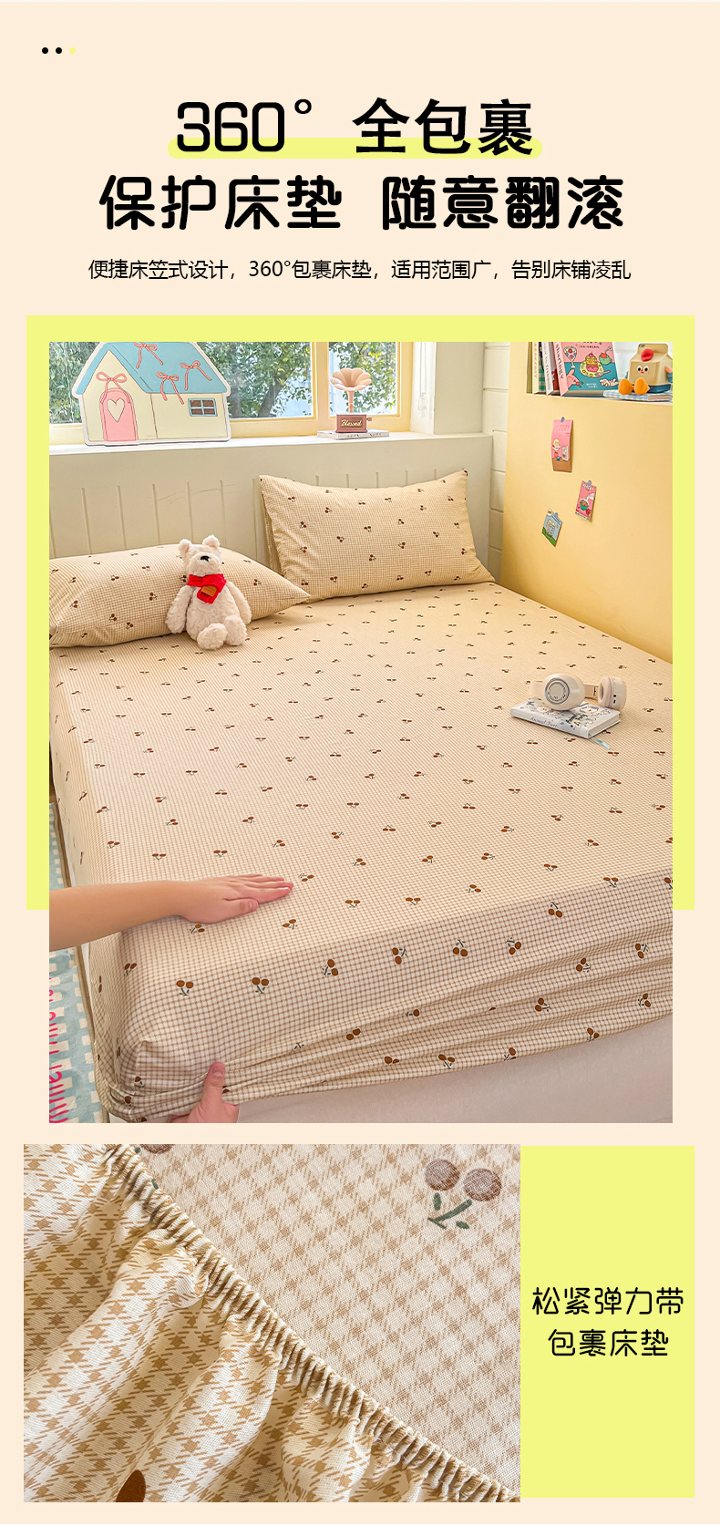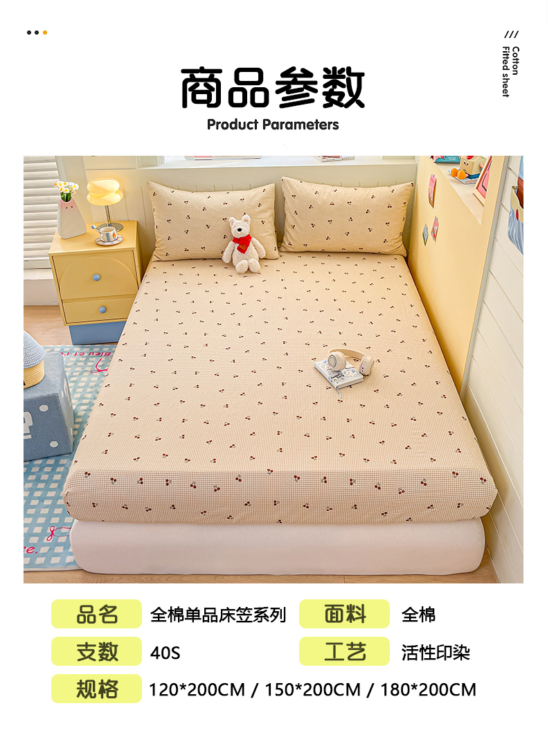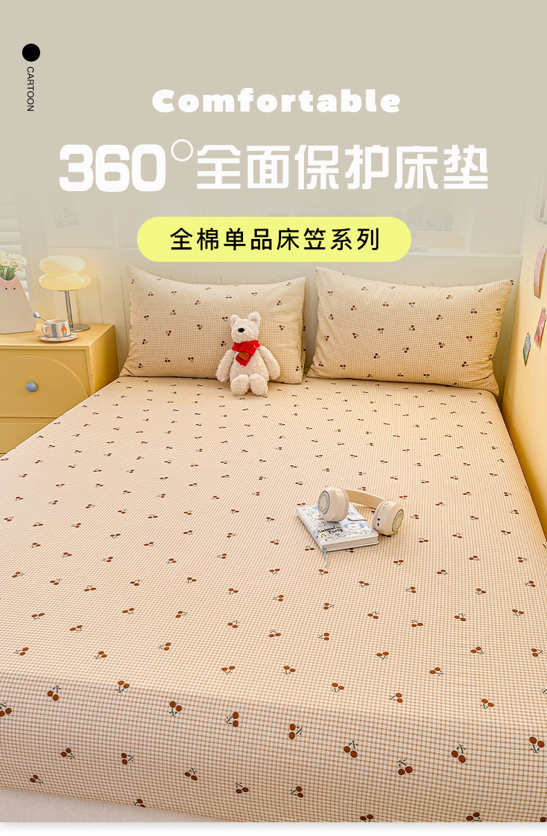 当前位置: 91家纺网 > 商品网购 > 床上用品 > 床笠 > 瑞莱 2026新款纯棉全棉单品印花卡通床笠枕套系列 樱桃点点