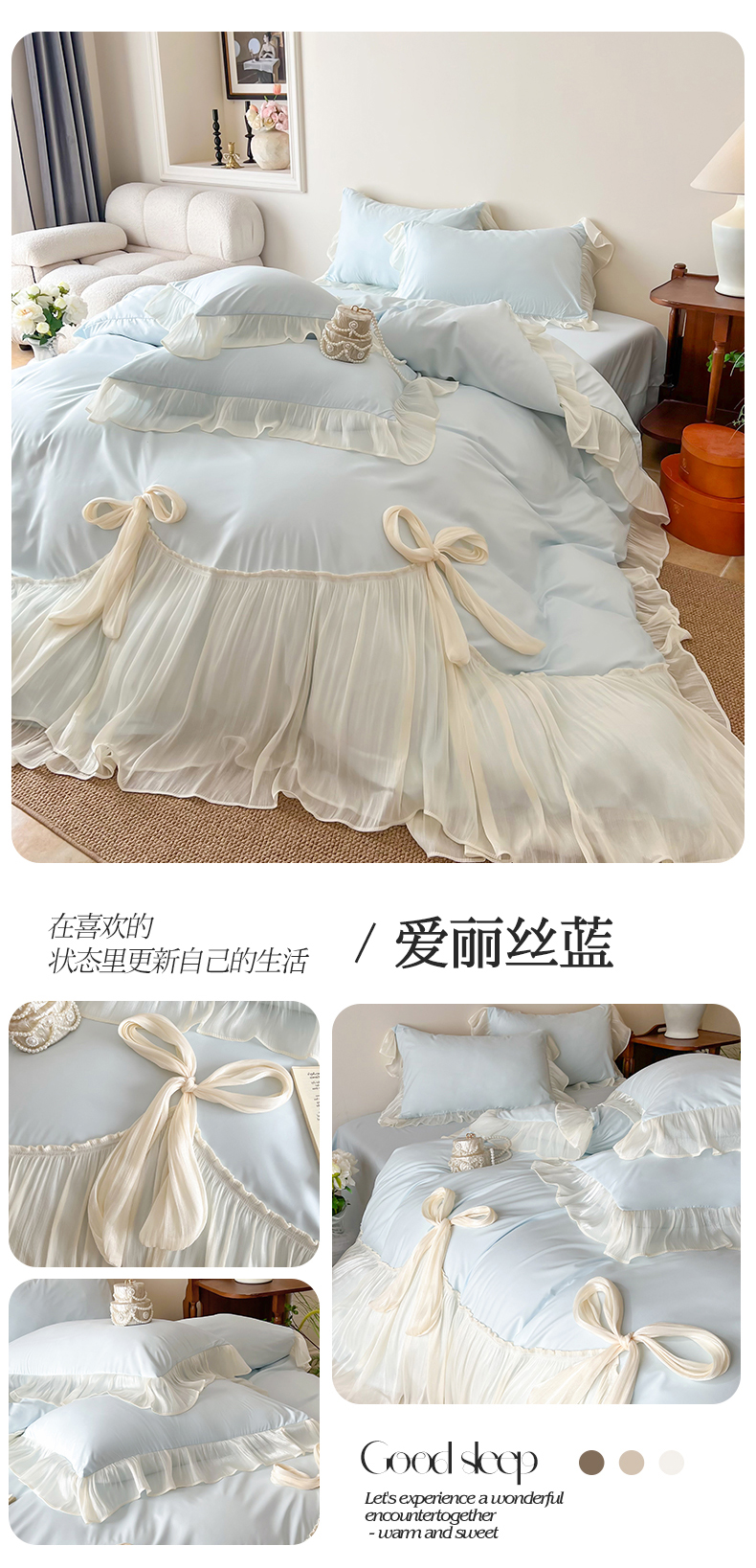 (总)吾欢心 2026春夏新款韩版雪纺花边泡芙双层纱四件套,花未央,费尔岛小马,复古猫咪,海棠物语,赫本,花期,花韵,卡通小猫,猫咪乐园,蜜爱甜心,奶萌小狗,奶油樱桃,甜蜜爱心