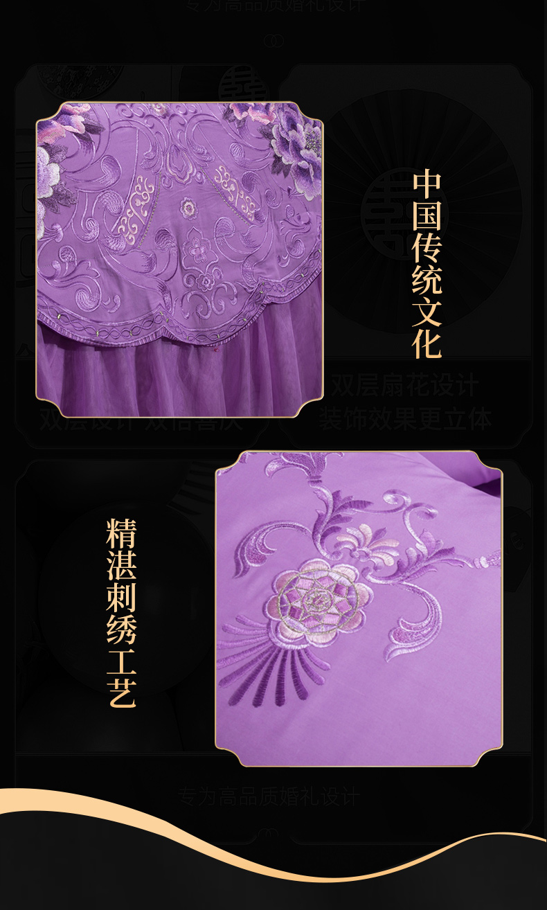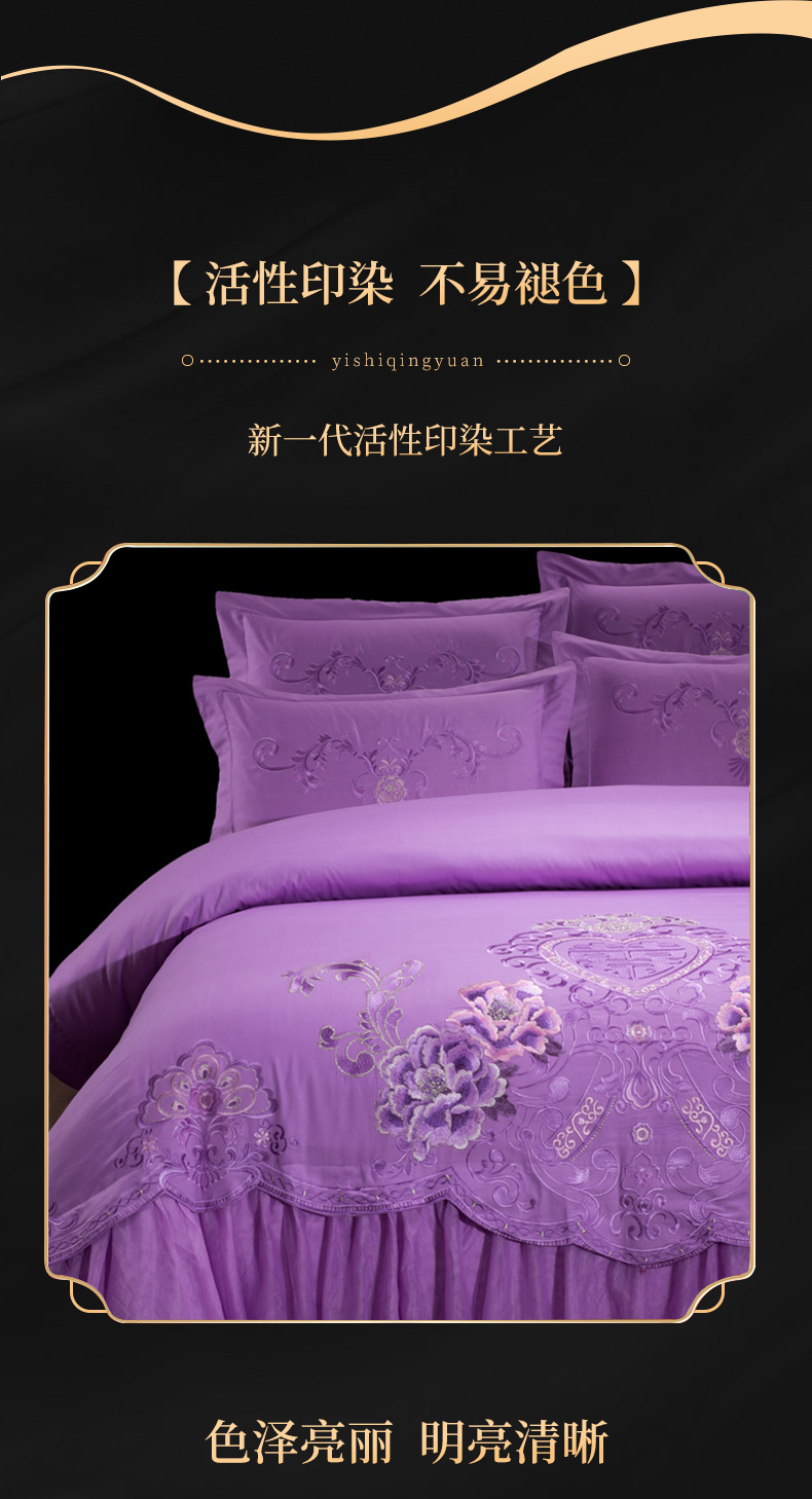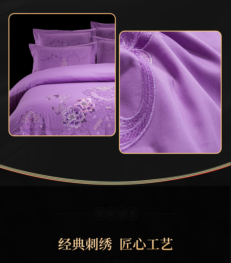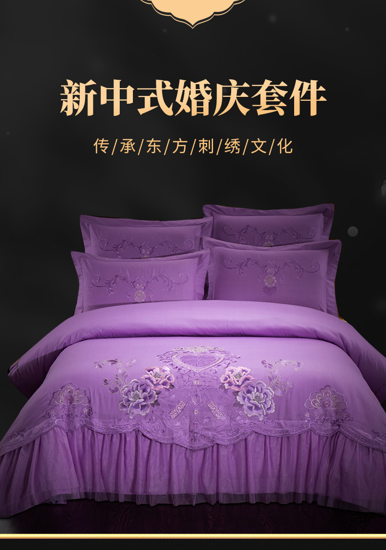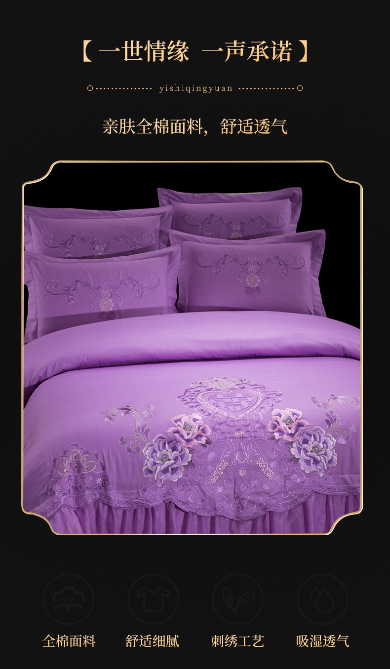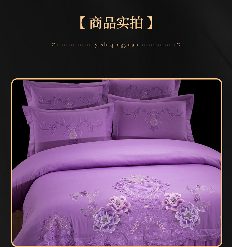 当前位置: 91家纺网 > 商品网购 > 床品套件 > 四件套 > 婚庆四件套 > 慕她家纺 慕她畅销款全棉纯棉婚庆四件套大红色刺绣结婚床上用品 花蔓喜多 雪青