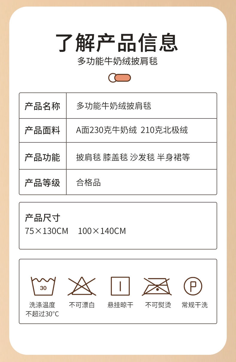 商品名称:(总)布凡家居 2026新款多功能中古无印风牛奶绒披肩毯毯子毛毯