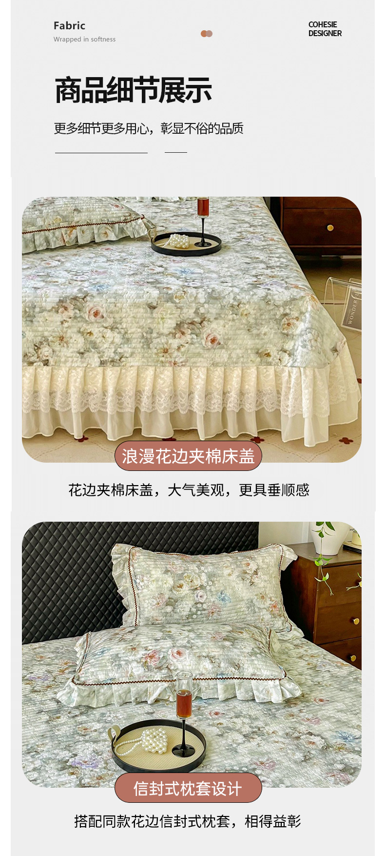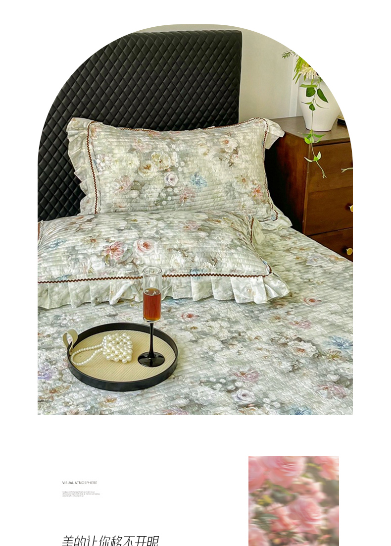 (总)胜权家纺 2026新款A类全棉法式13372数码印花夹棉床盖单品系列,花非花粉,花非花绿,花海绿,锦绣繁华粉,锦绣繁华绿,妙颜粉