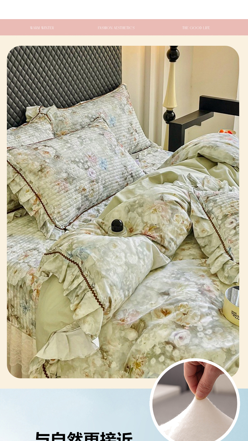 (总)胜权家纺 2024新款小香风牛奶绒夹棉床盖四件套-芭莎系列,芭莎-粉,芭莎-绿,芭莎-紫,芭莎-米