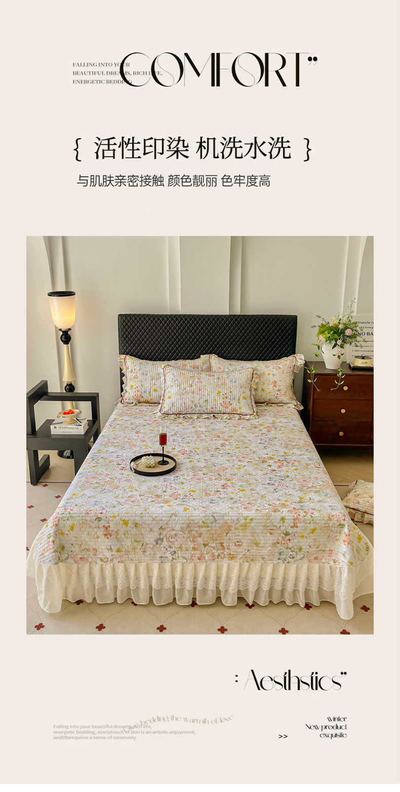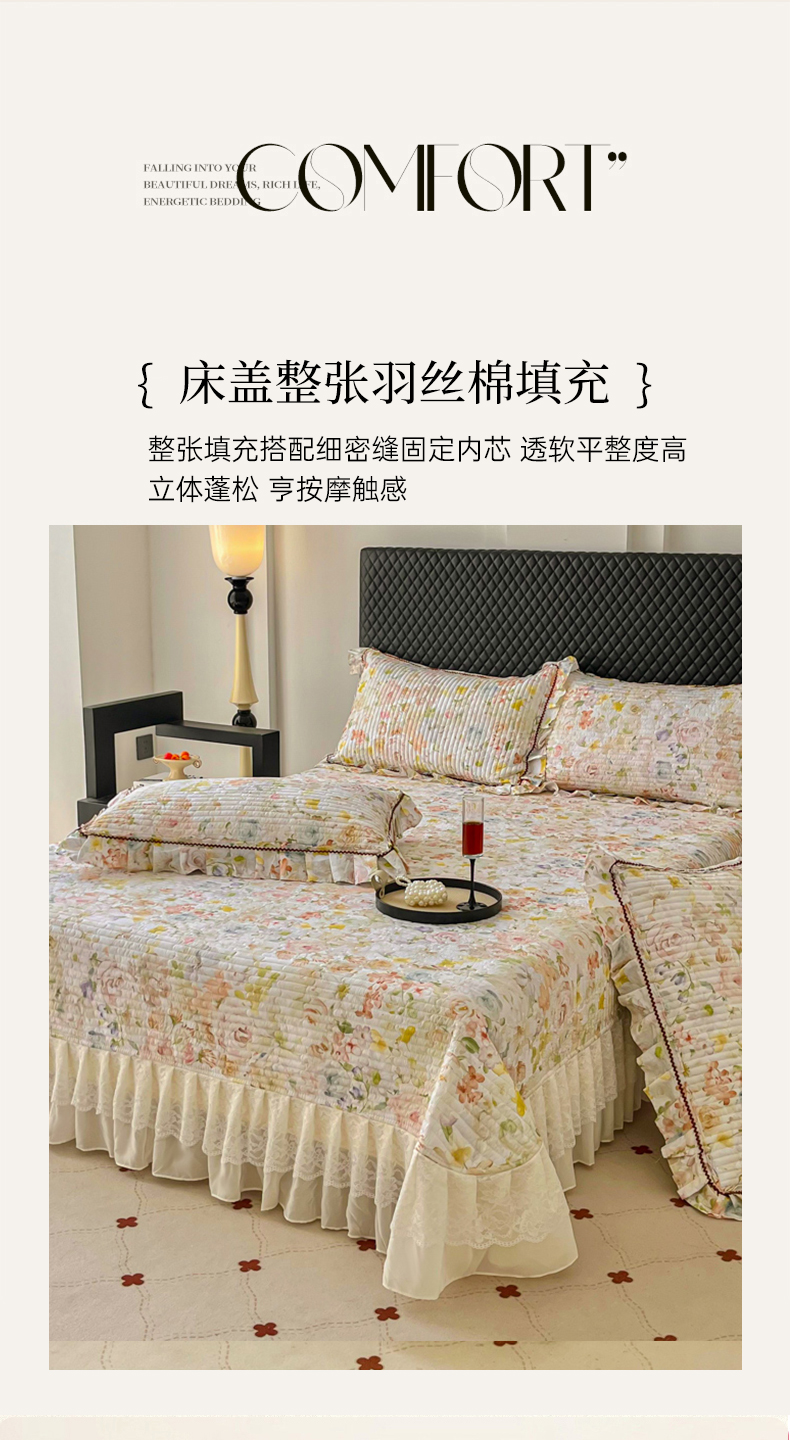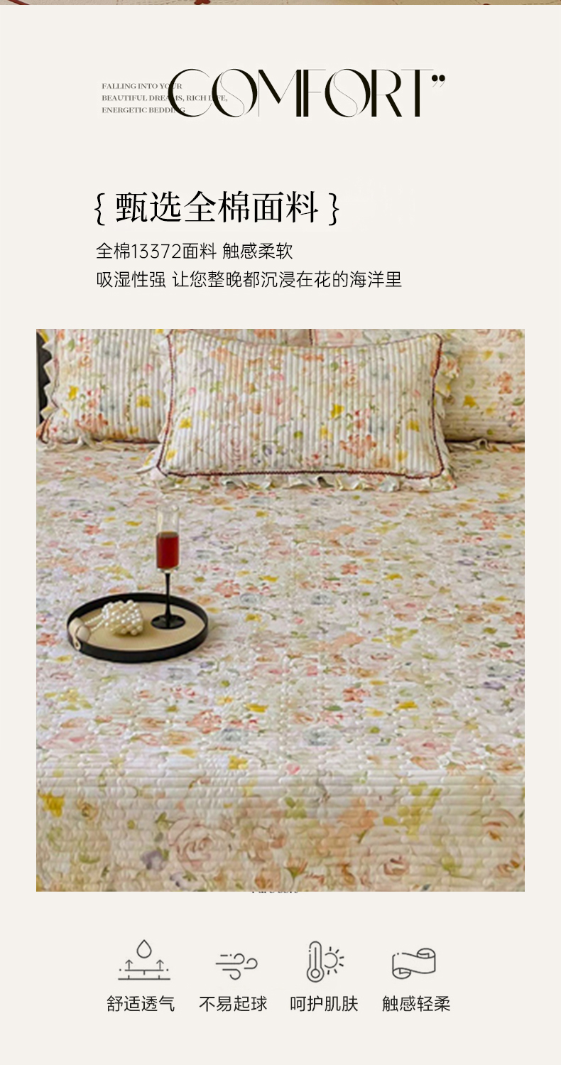 (总)胜权家纺 2026新款A类全棉法式13372数码印花夹棉床盖单品系列,花非花粉,花非花绿,花海绿,锦绣繁华粉,锦绣繁华绿,妙颜粉