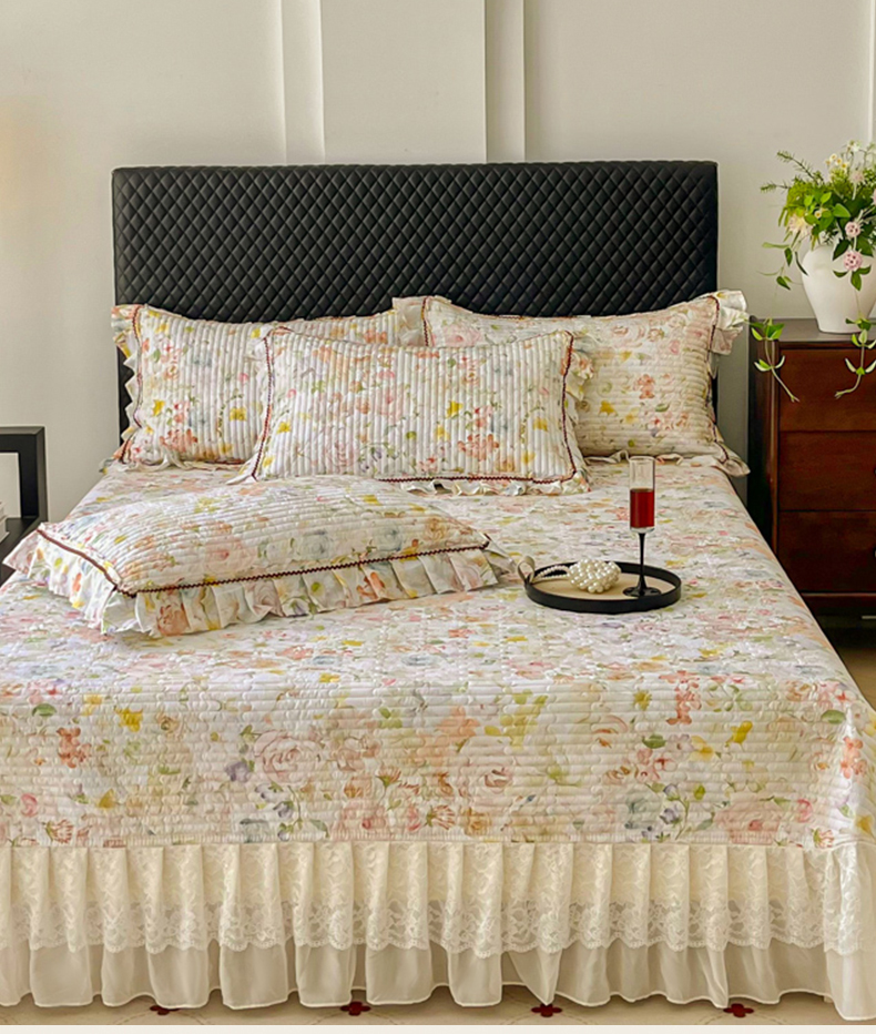 (总)胜权家纺 2026新款A类全棉法式13372数码印花夹棉床盖四件套系列,花非花粉,花非花绿,花海绿,锦绣繁华粉,锦绣繁华绿,妙颜粉