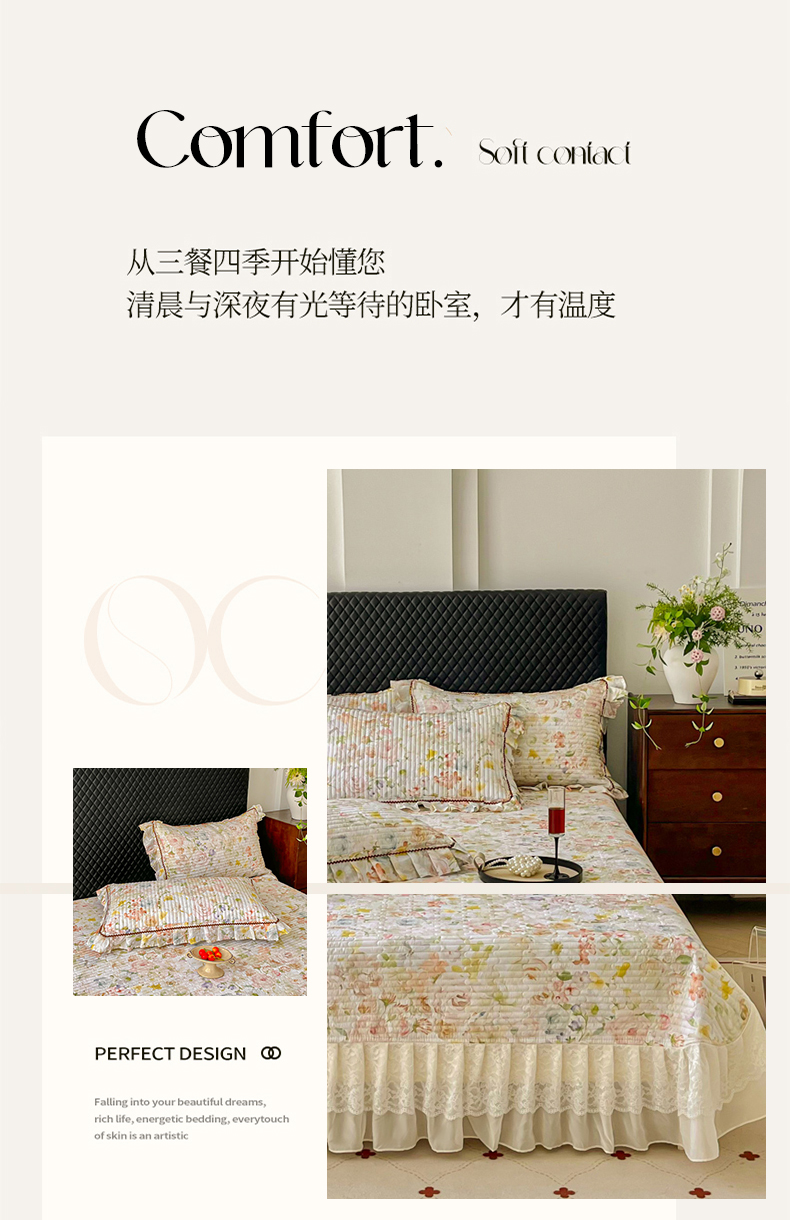 • 91家纺网 家纺一手货源 找家纺 (总)胜权家纺 2026新款A类全棉法式13372数码印花夹棉床盖单品系列,花非花粉,花非花绿,花海绿,锦绣繁华粉,锦绣繁华绿,妙颜粉