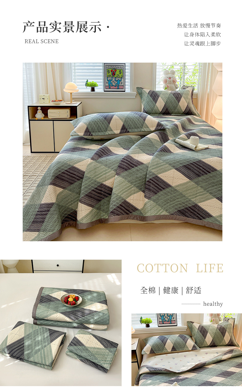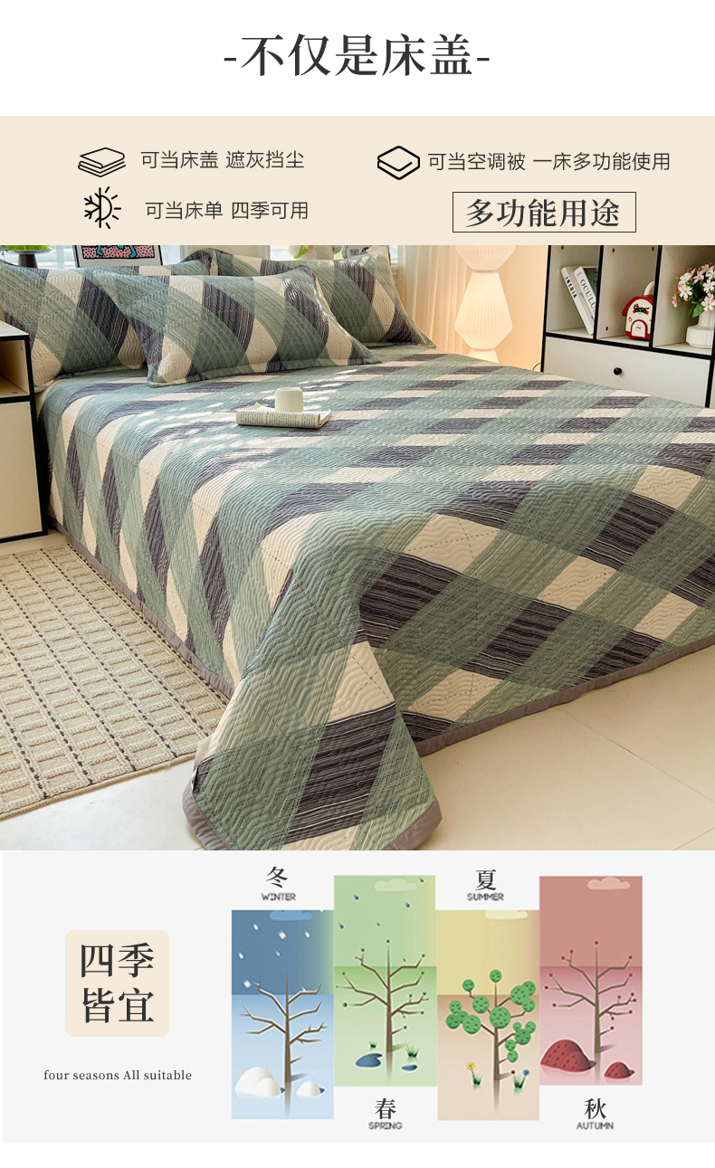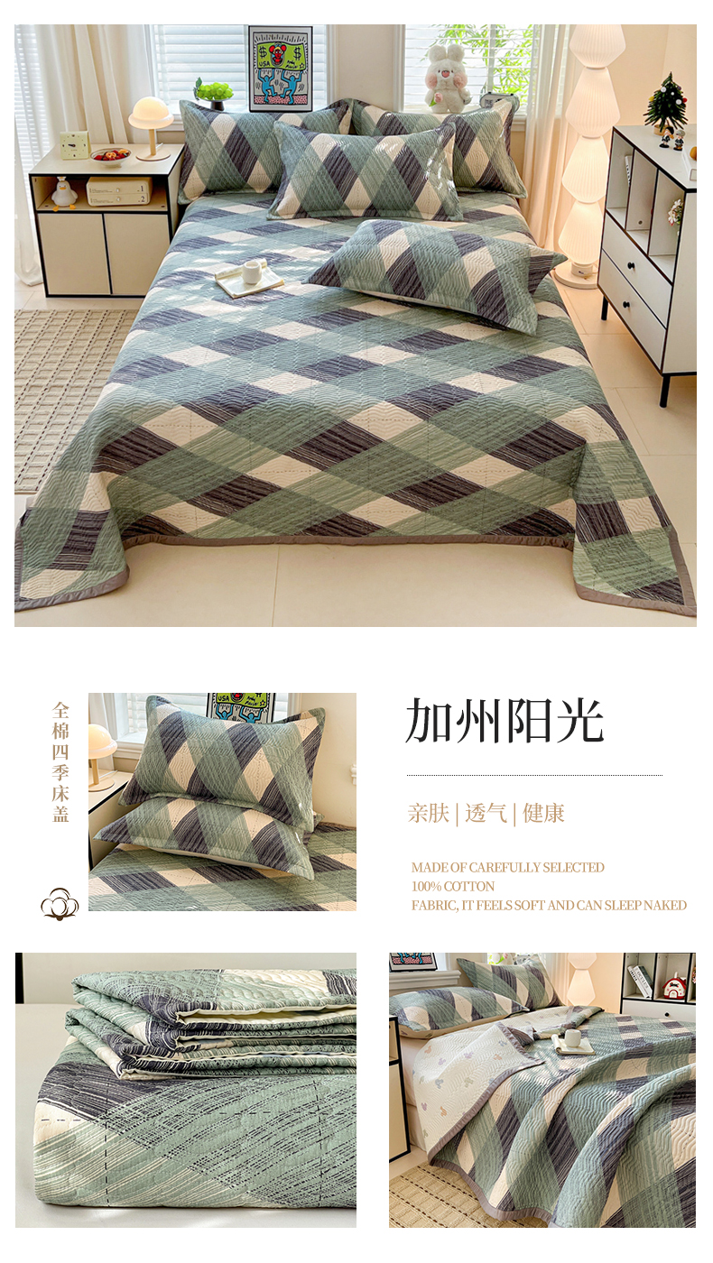 • 91家纺网 家纺一手货源 找家纺 梦精灵家纺 2026新款纯棉床盖单件全棉绗缝夹棉床单 四季通用榻榻米防滑学生宿舍单人被套枕套 加州阳光