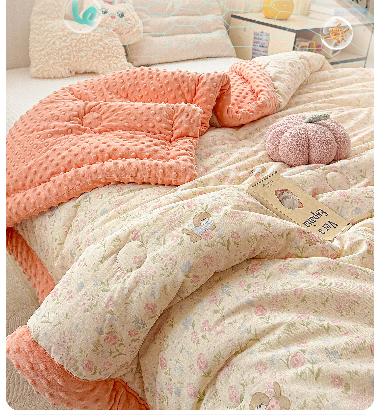• 91家纺网 家纺一手货源 找家纺 小桃姐家纺 2025新款全棉豆豆绒儿童被 被子被芯 莫奈花园