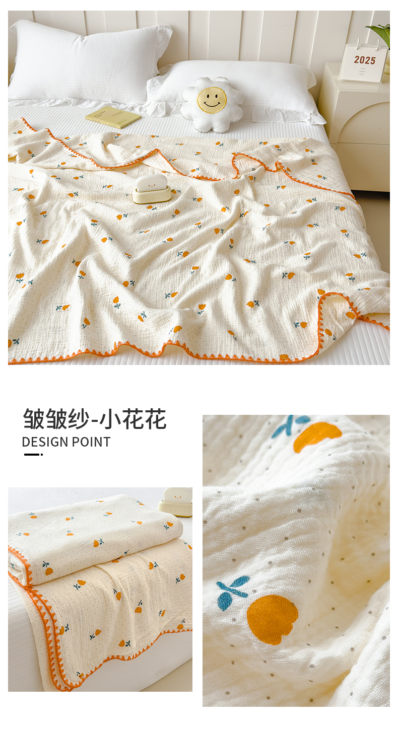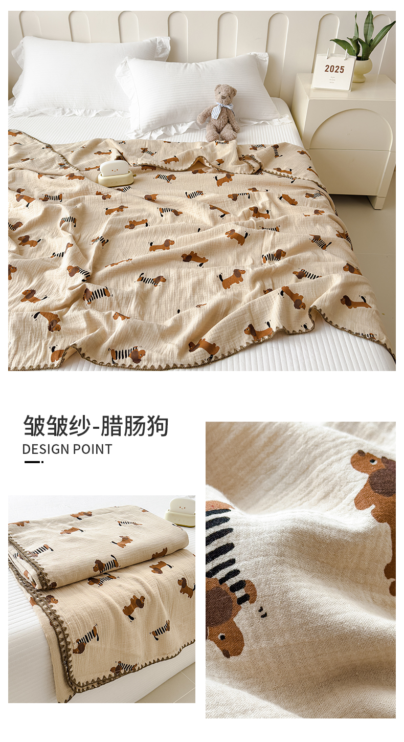 布凡家居 2026新款全棉纯棉双层纱布毯夏被毯盖毯双层纱浴巾毯 皱皱纱-小猫咪