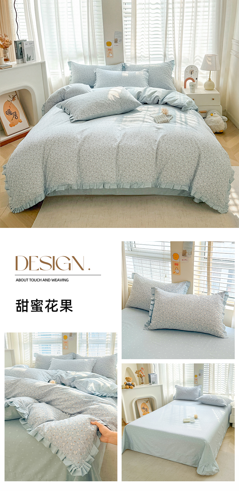 商品名称:帛美家纺 2026新款全棉花边款印花四件套 甜蜜花果