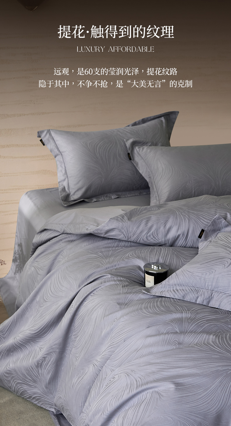 梧桐树 2026新款60支长绒棉提花高奢系列四件套 T01幻境灰紫
