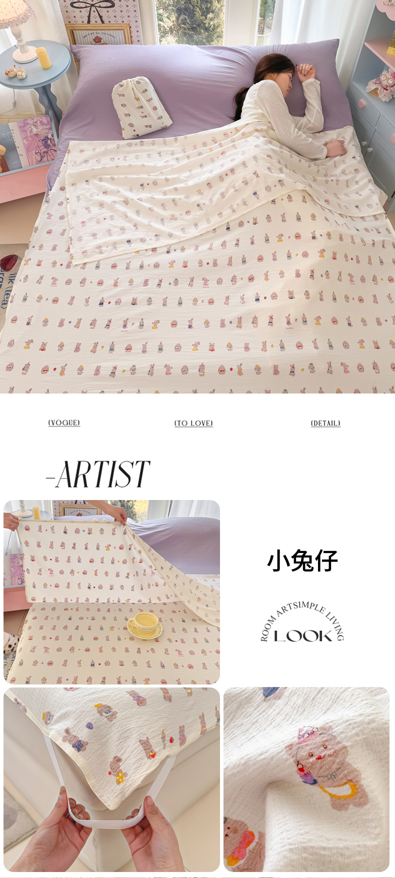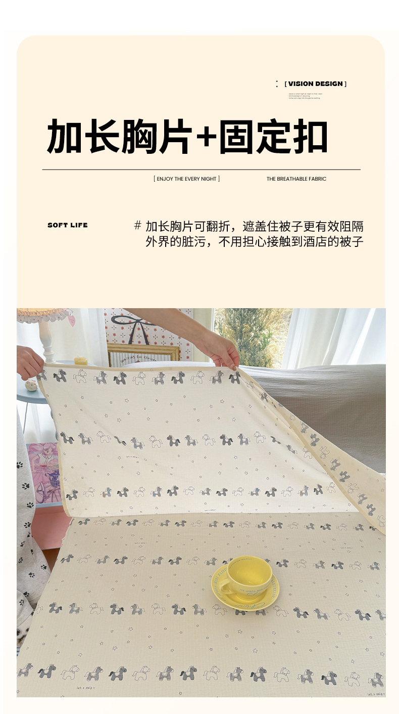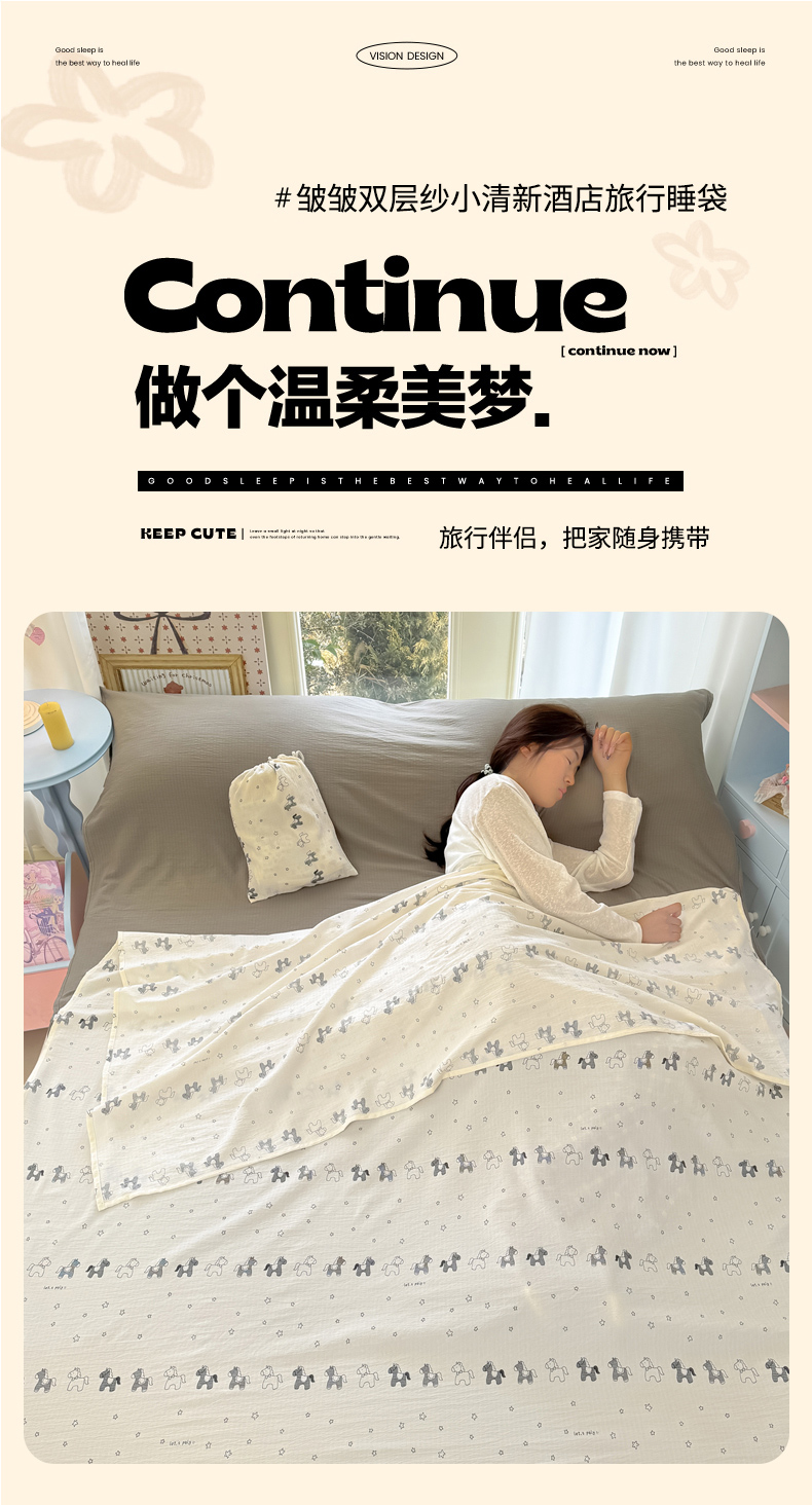 商品名称:(总)Sweet dreams甜梦 2026新款A类皱皱双层纱小清新酒店一体式旅行睡袋