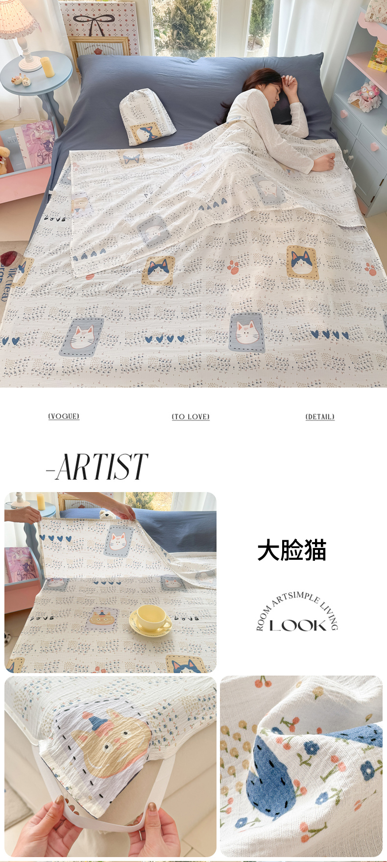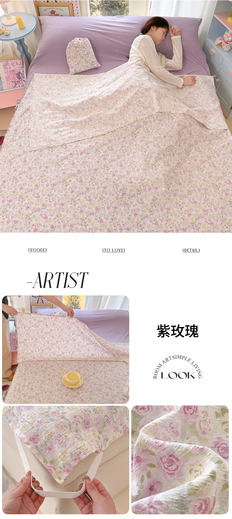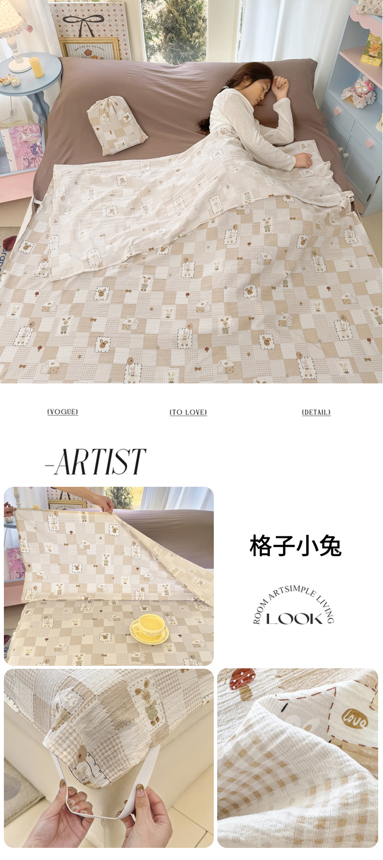 商品名称:(总)Sweet dreams甜梦 2026新款A类皱皱双层纱小清新酒店一体式旅行睡袋
