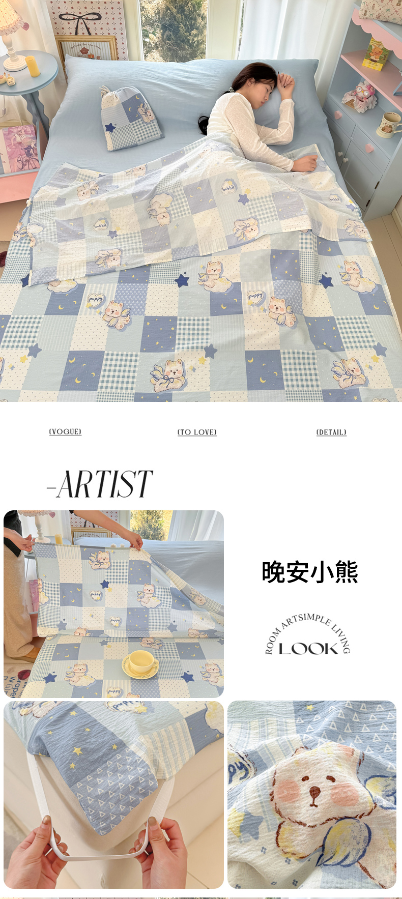 (总)Sweet dreams甜梦 2026新款小清新卡通全棉纯棉印花床盖四件套,组合图仅做展示不可下单,蛋糕小狗,蝴蝶结兔兔,碎花小兔,碎花小熊,晚安熊,小动物,星星小狗,星星小兔,樱桃小狗