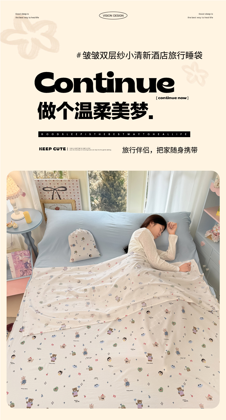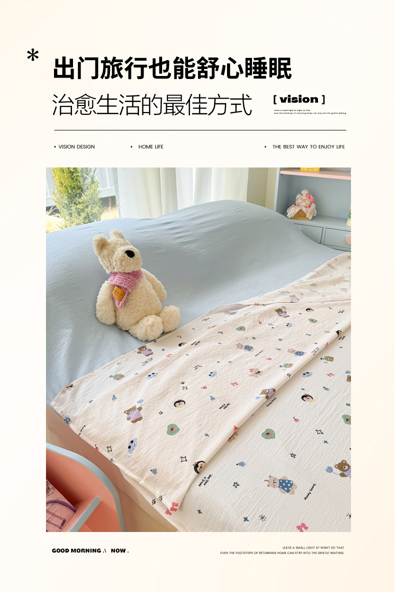 Sweet dreams甜梦 2026新款A类皱皱双层纱小清新酒店一体式旅行睡袋 奇趣小动物