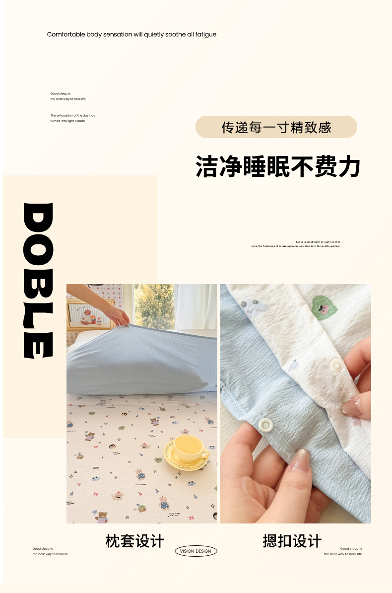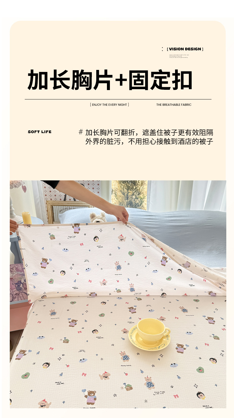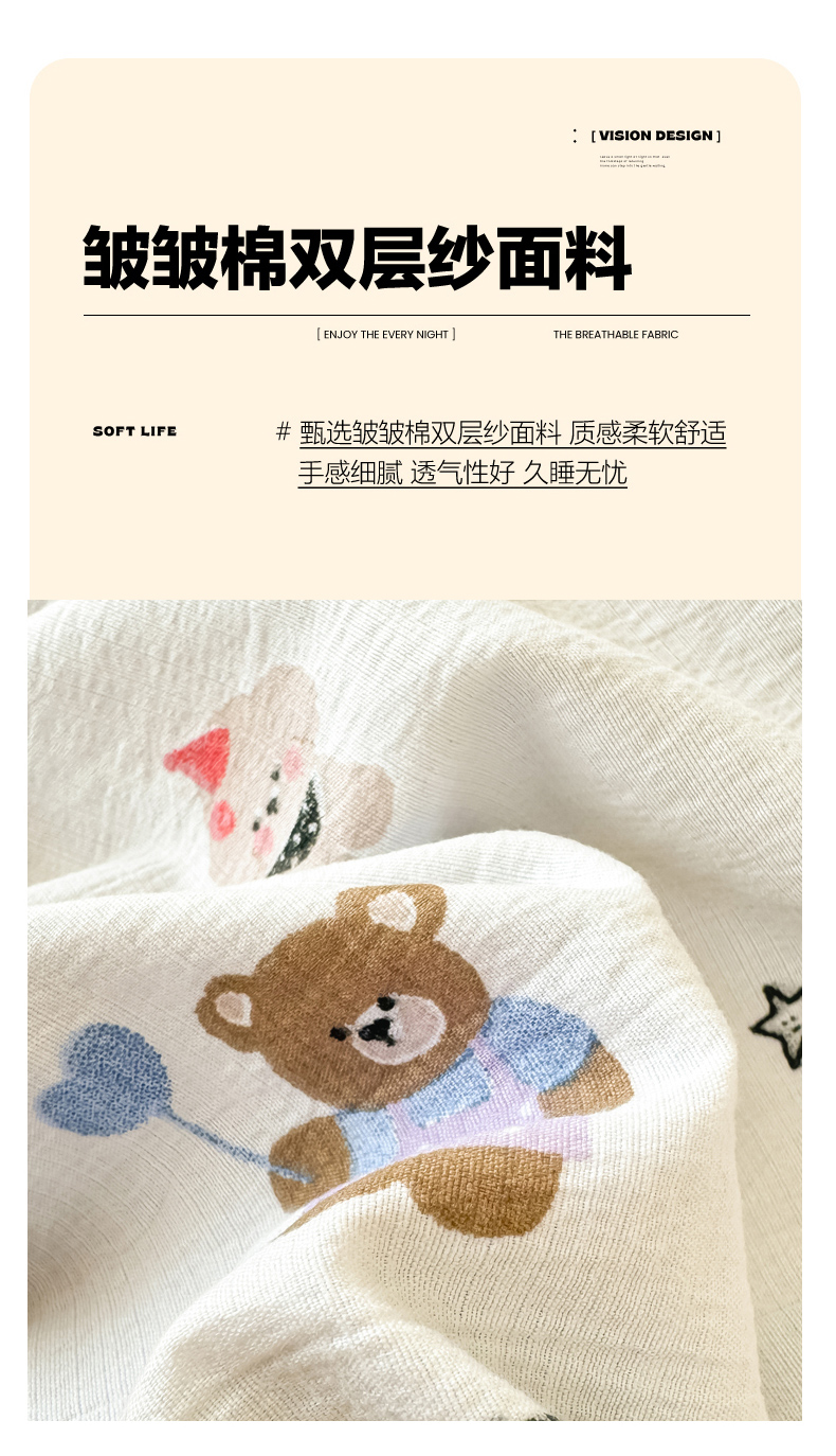 商品名称:Sweet dreams甜梦 2026新款A类皱皱双层纱小清新酒店一体式旅行睡袋 奇趣小动物