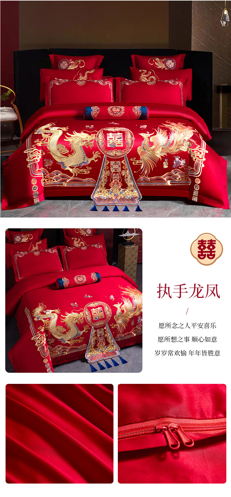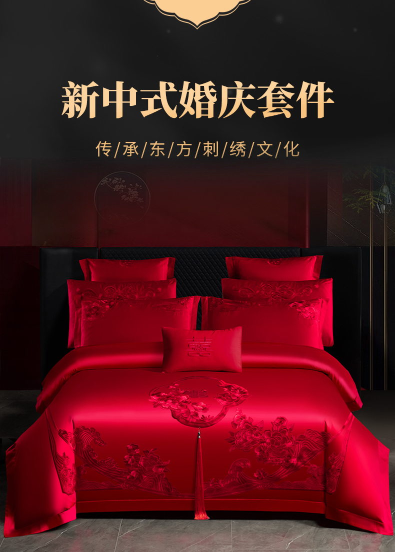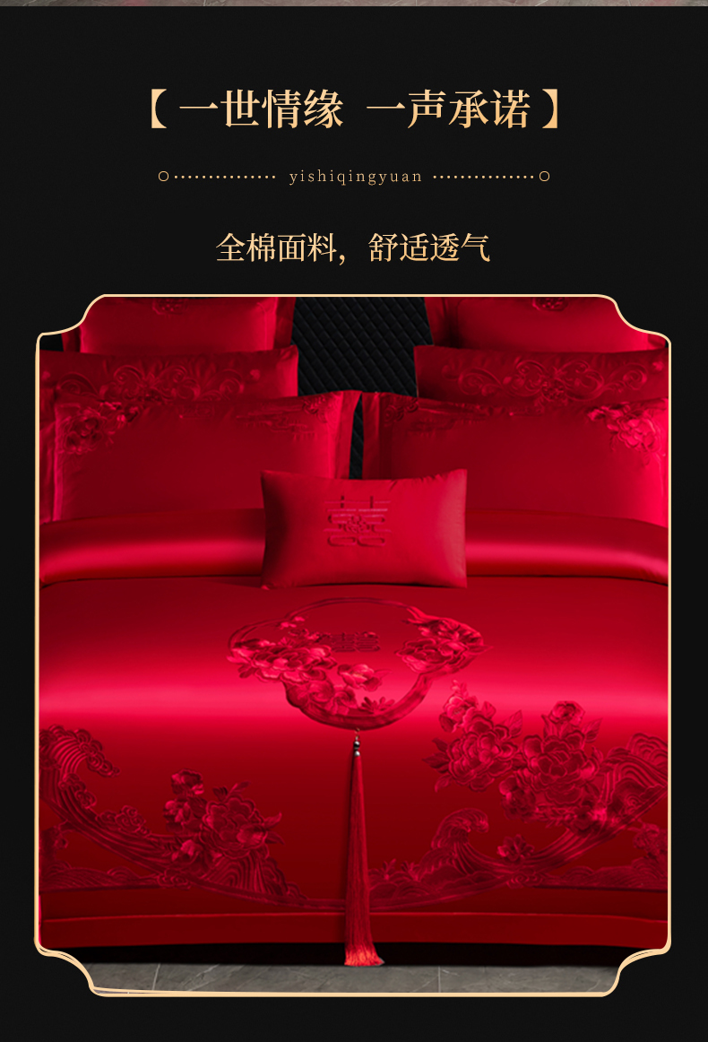 当前位置: 91家纺网 > 商品网购 > 床品套件 > 四件套 > 婚庆四件套 > 慕她家纺 2026慕她大花工艺款全棉纯棉婚庆四件套大红色刺绣结婚床上用品 美丽红妆