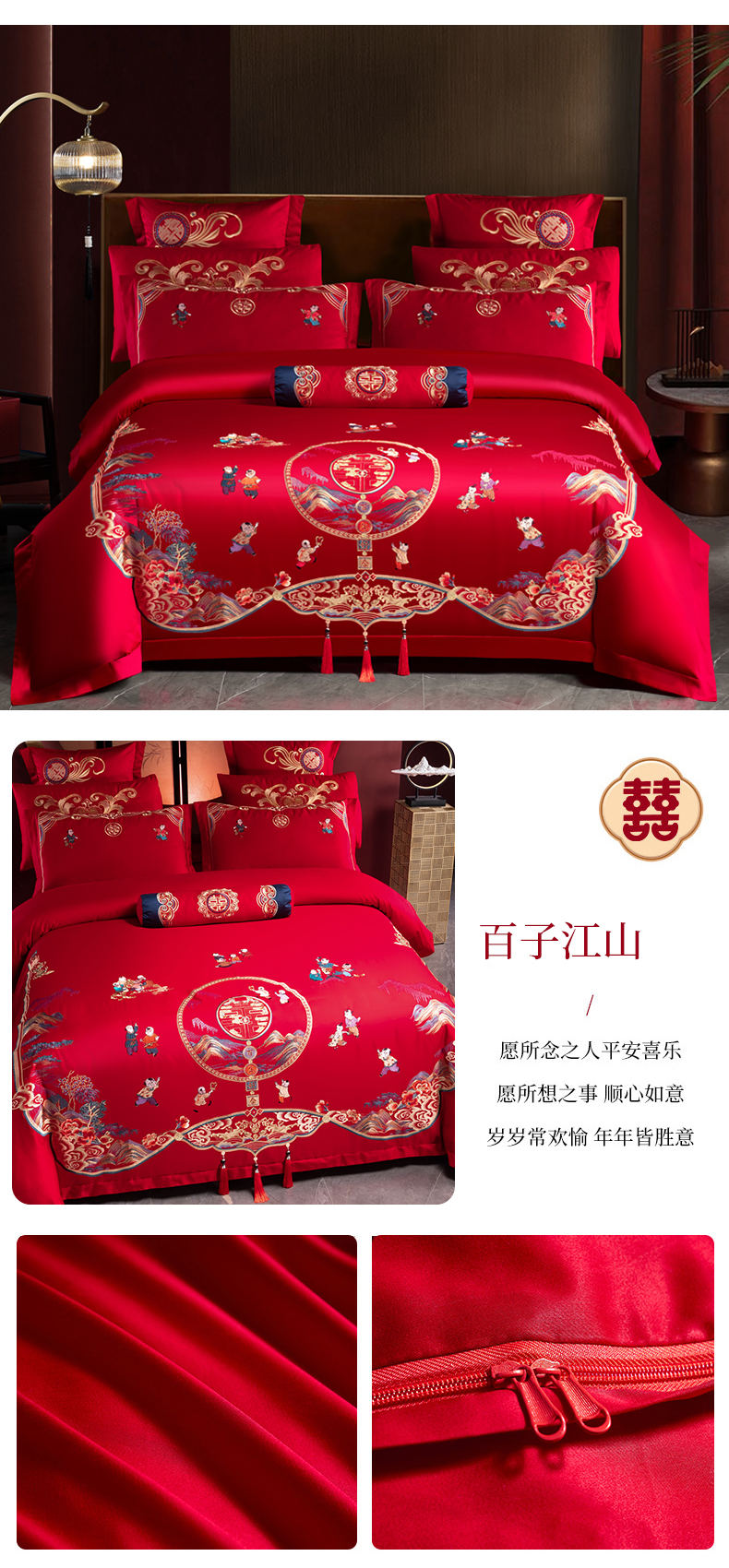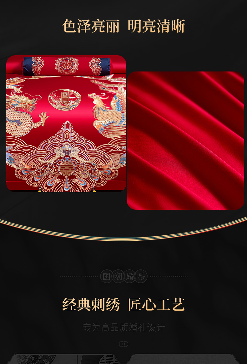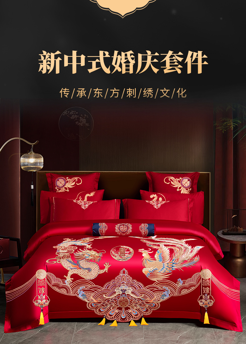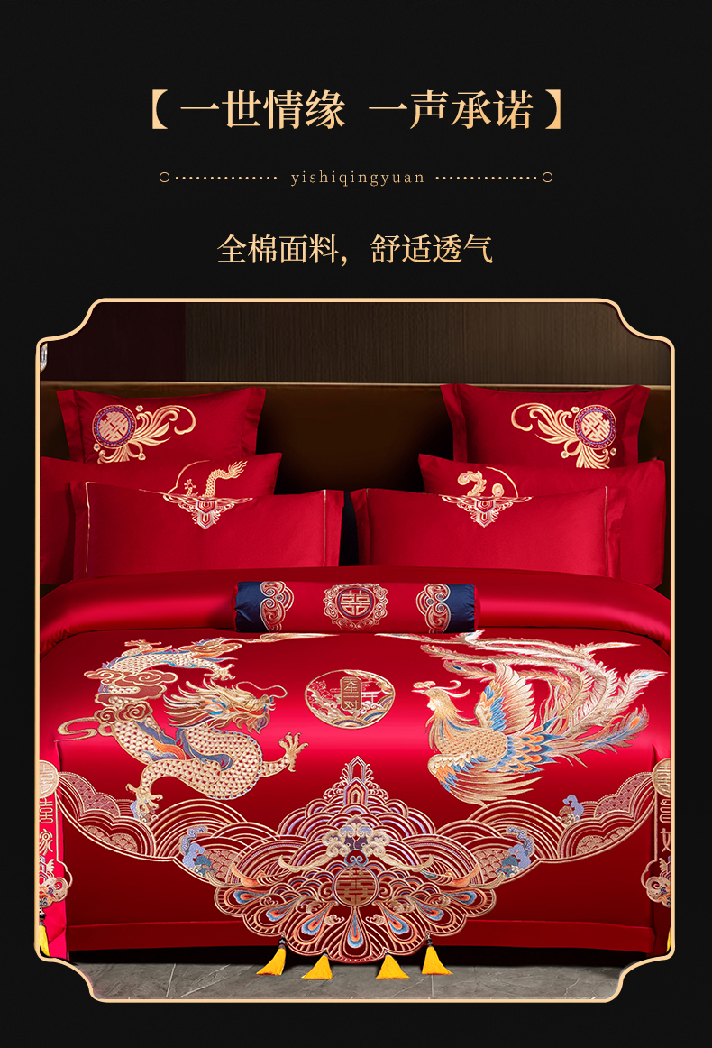 当前位置: 91家纺网 > 商品网购 > 床品套件 > 四件套 > 婚庆四件套 > 慕她家纺 2026慕她大花工艺款全棉纯棉婚庆四件套大红色刺绣结婚床上用品 天生一对