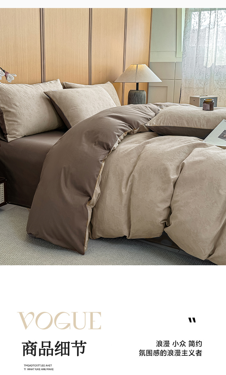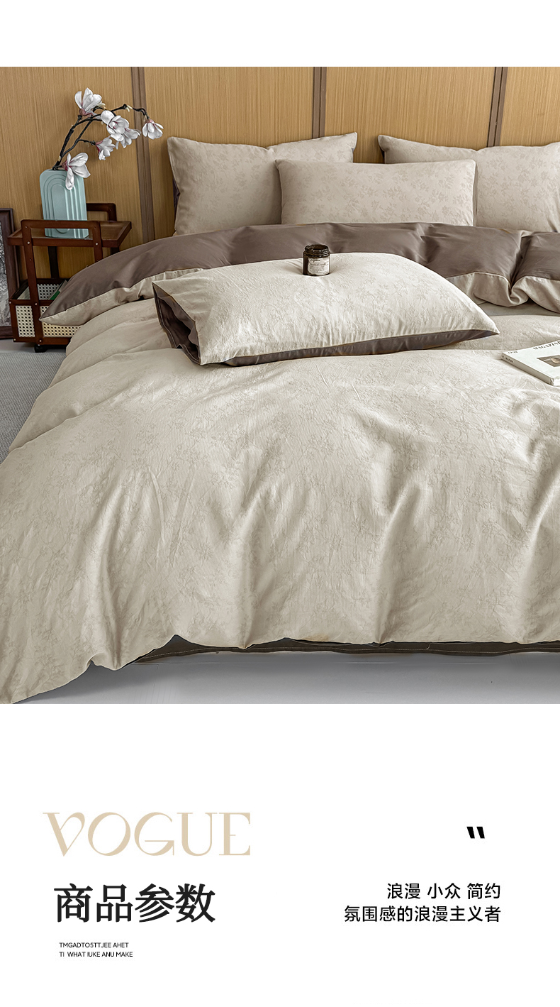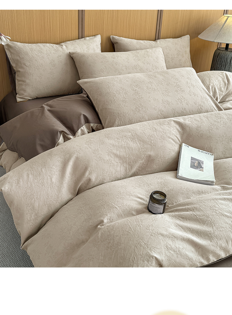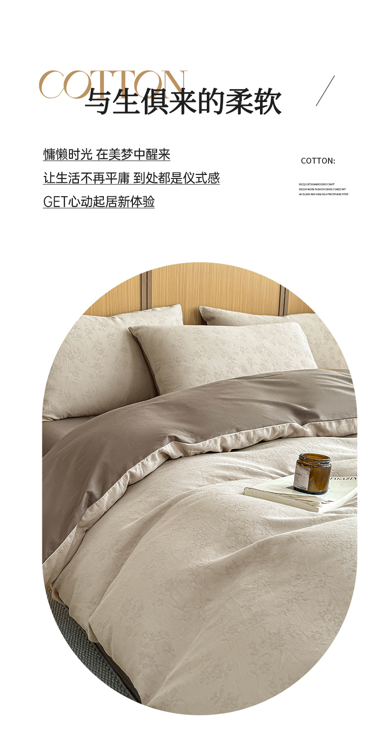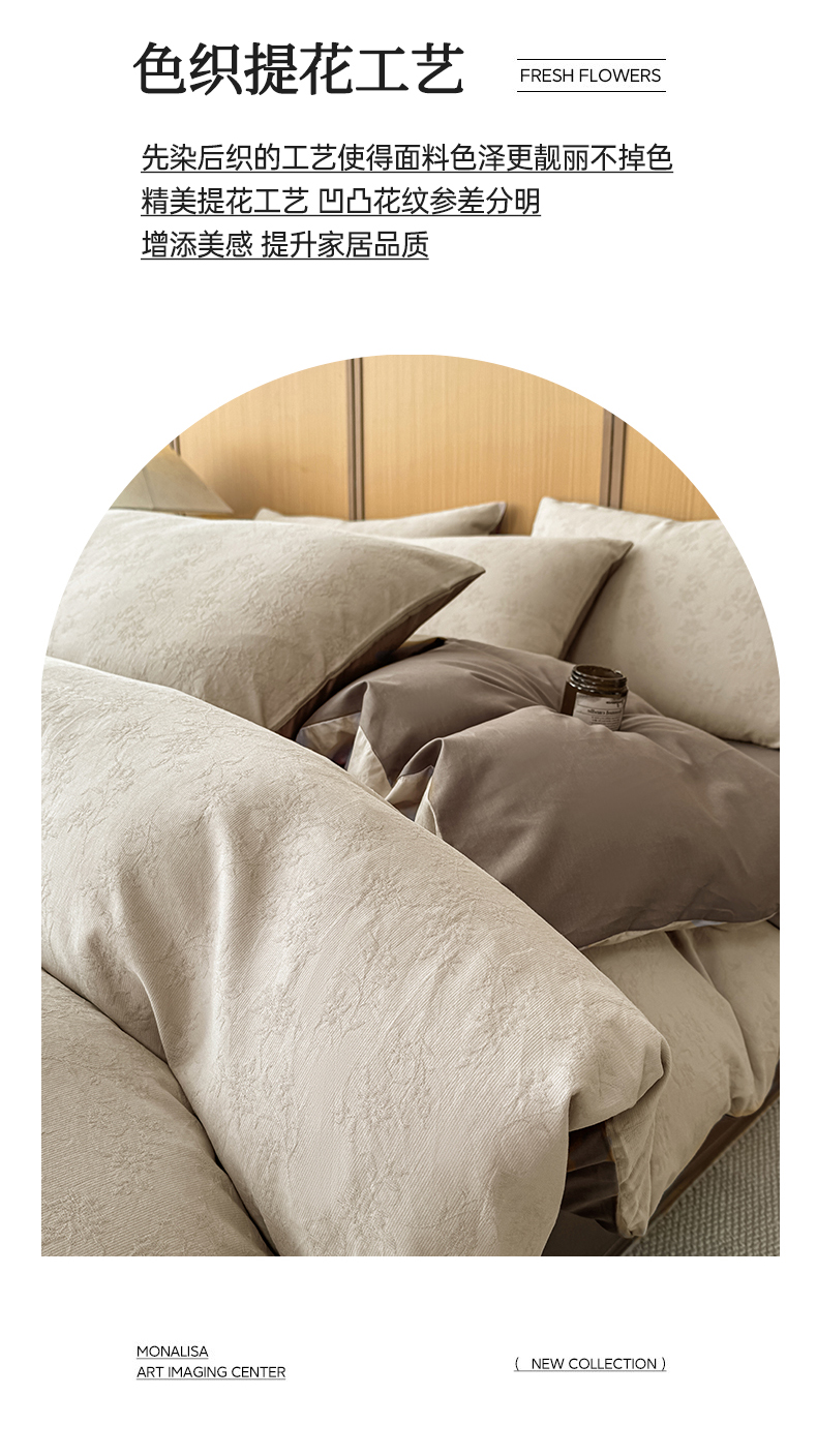 当前位置: 91家纺网 > 商品网购 > 床品套件 > 四件套 > 全棉普通四件套 > 灰鲸 2026新款全棉纯棉三层纱色织提花四件套 花影-可可奶咖
