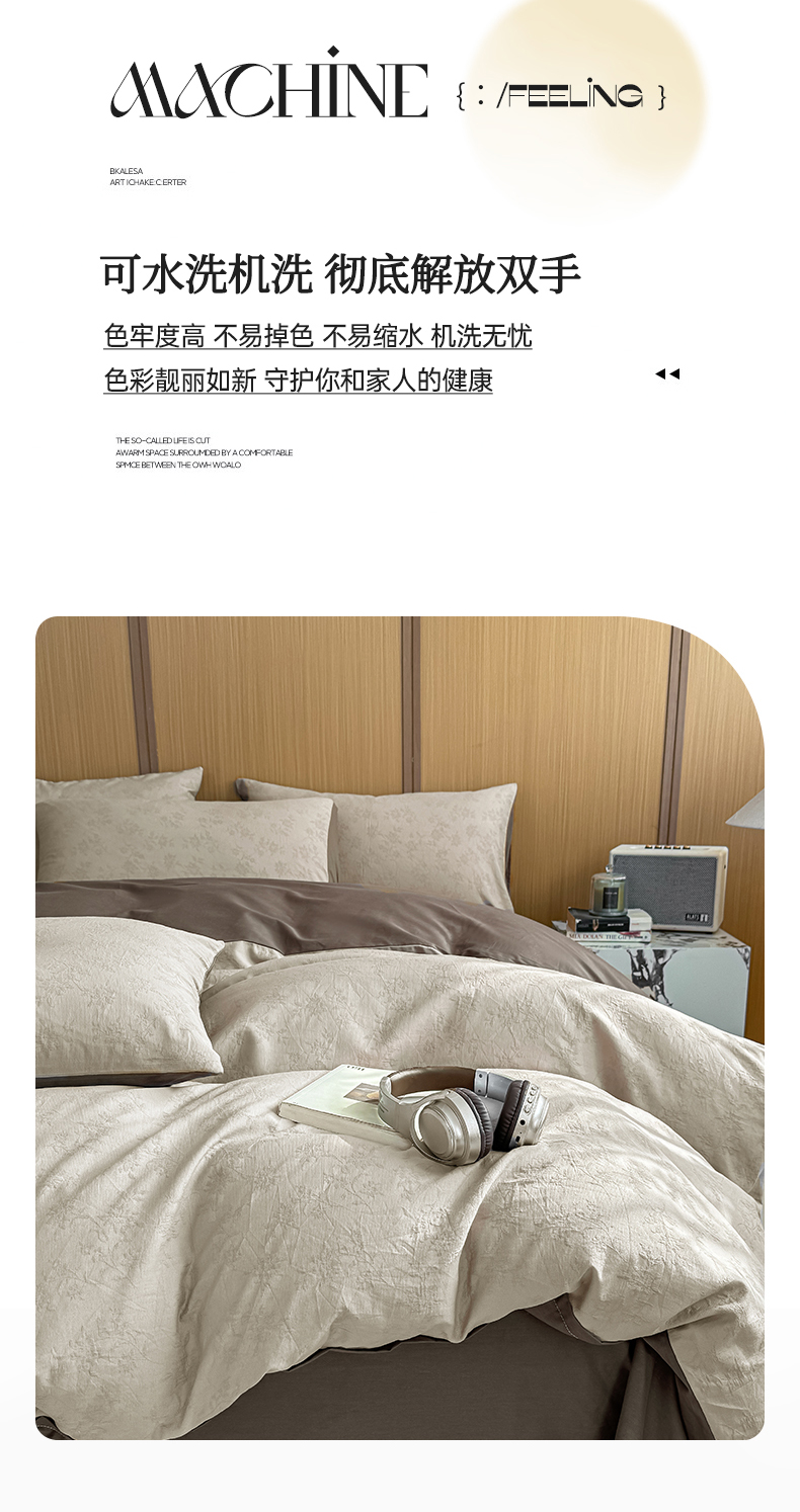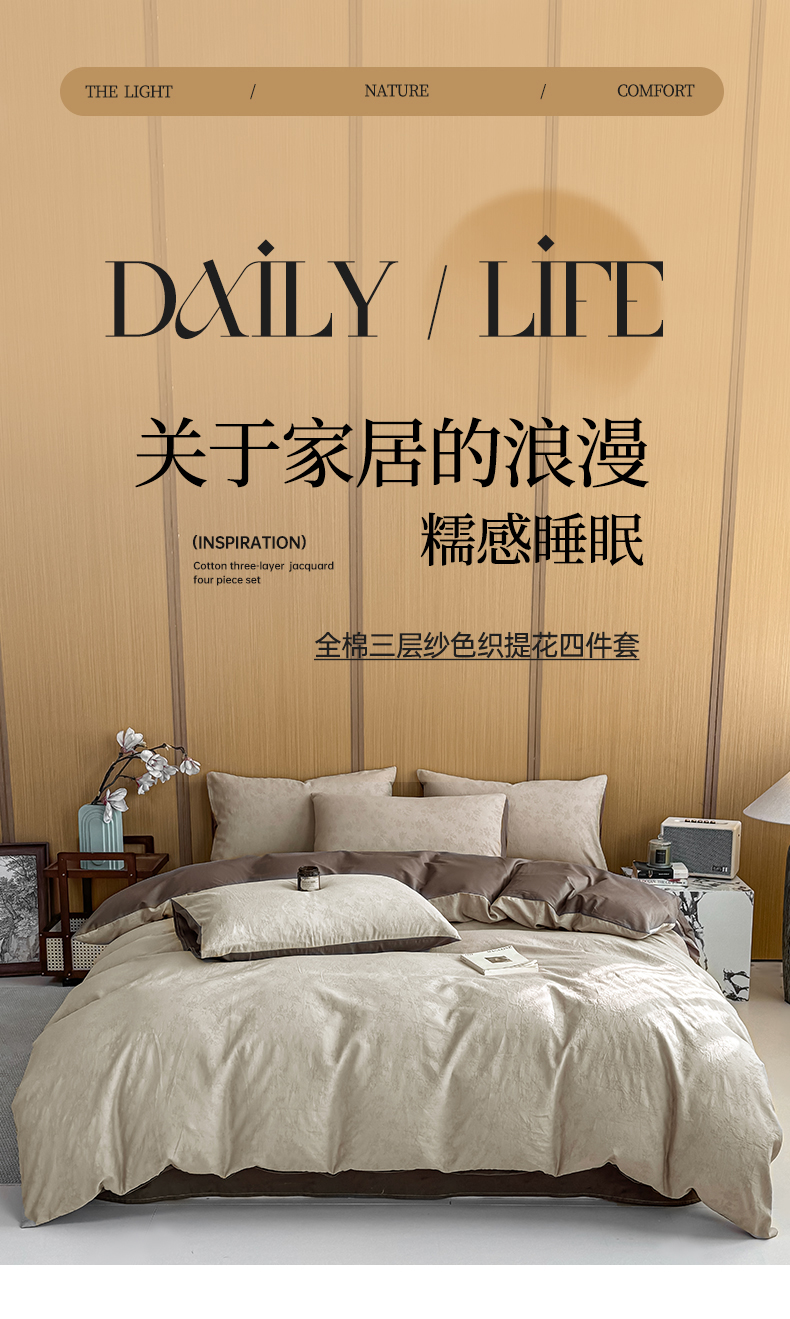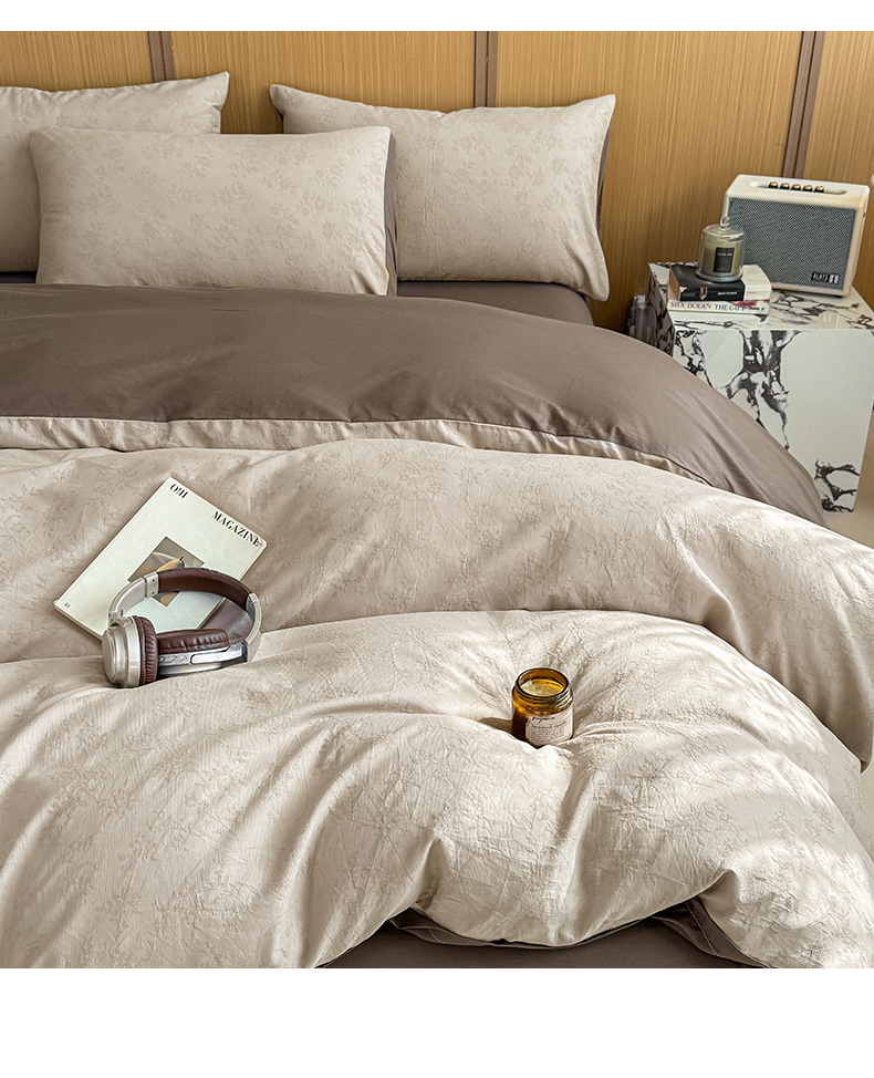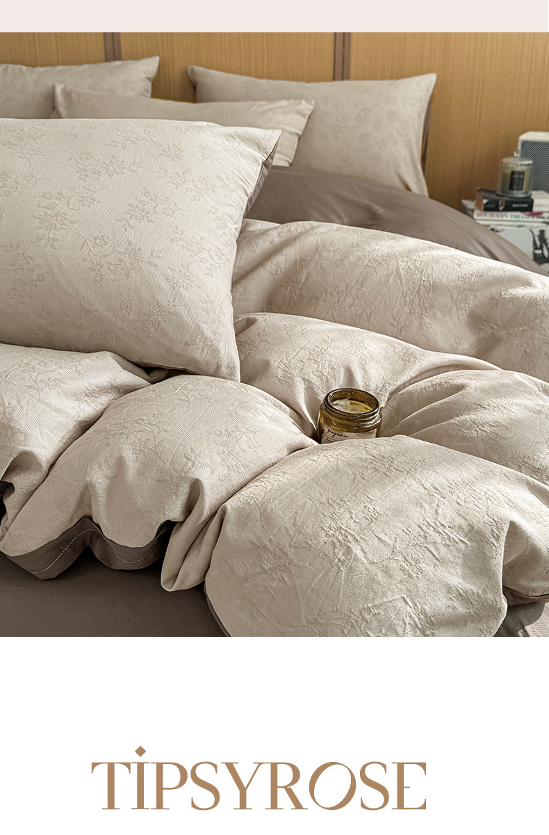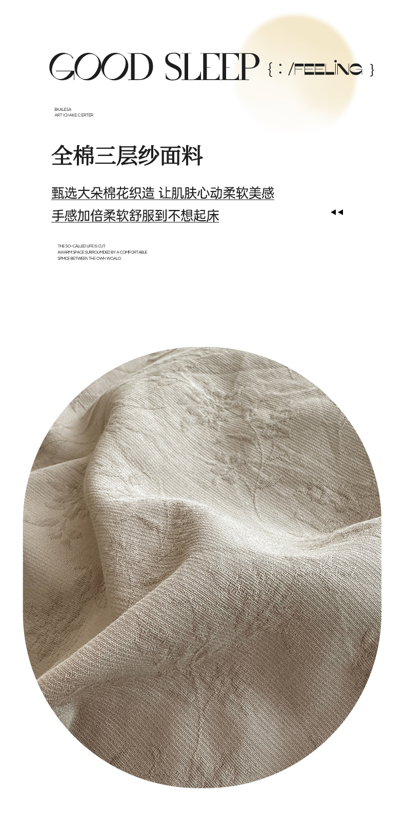 当前位置: 91家纺网 > 商品网购 > 床品套件 > 四件套 > 全棉普通四件套 > 灰鲸 2026新款全棉纯棉三层纱色织提花四件套 花影-可可奶咖