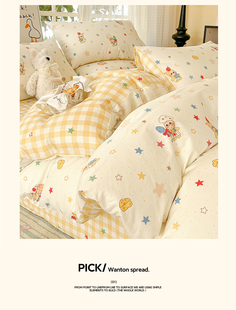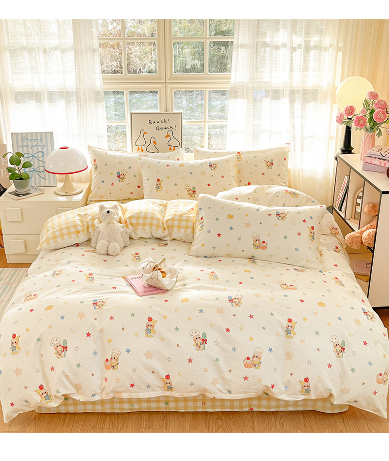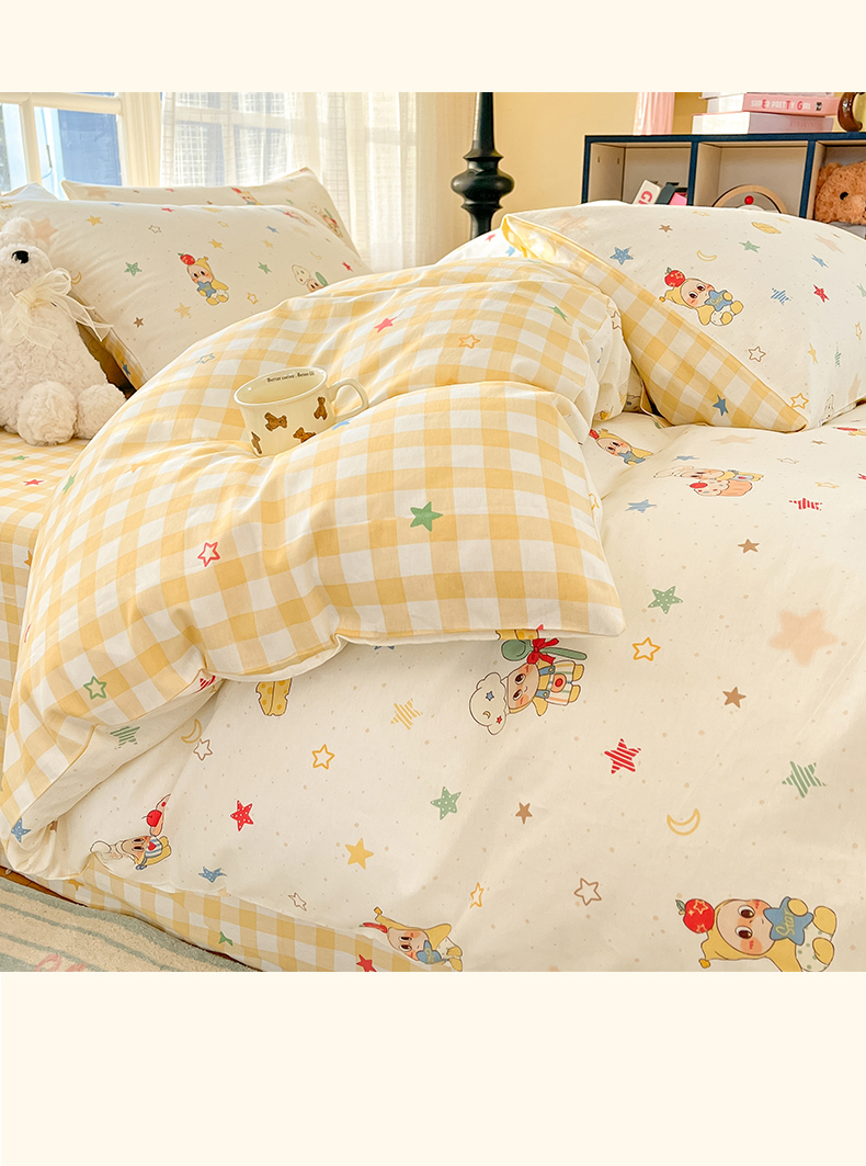 当前位置: 91家纺网 > 商品网购 > 床品套件 > 四件套 > 全棉普通四件套 > 睡美美家纺 2026新款全棉纯棉斜纹印花喷气小清新四季款学生三件套四件套 快乐小星星