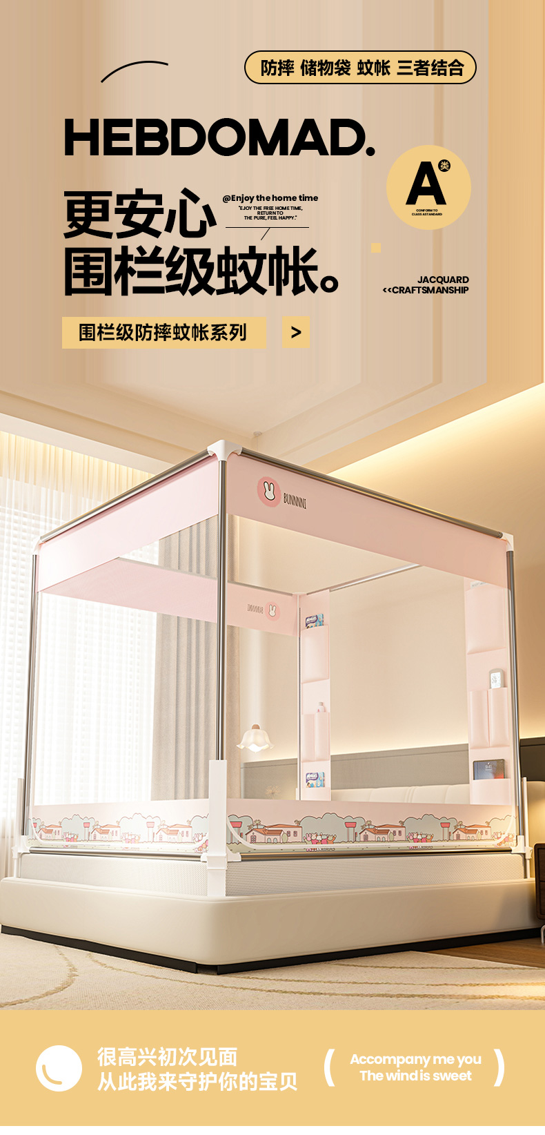 当前位置: 91家纺网 > 商品网购 > 床上用品 > 蚊帐 > 坐床式蚊帐 > 青竹苑 2026新款围栏托底口袋款坐床防摔蚊帐 兔兔小镇