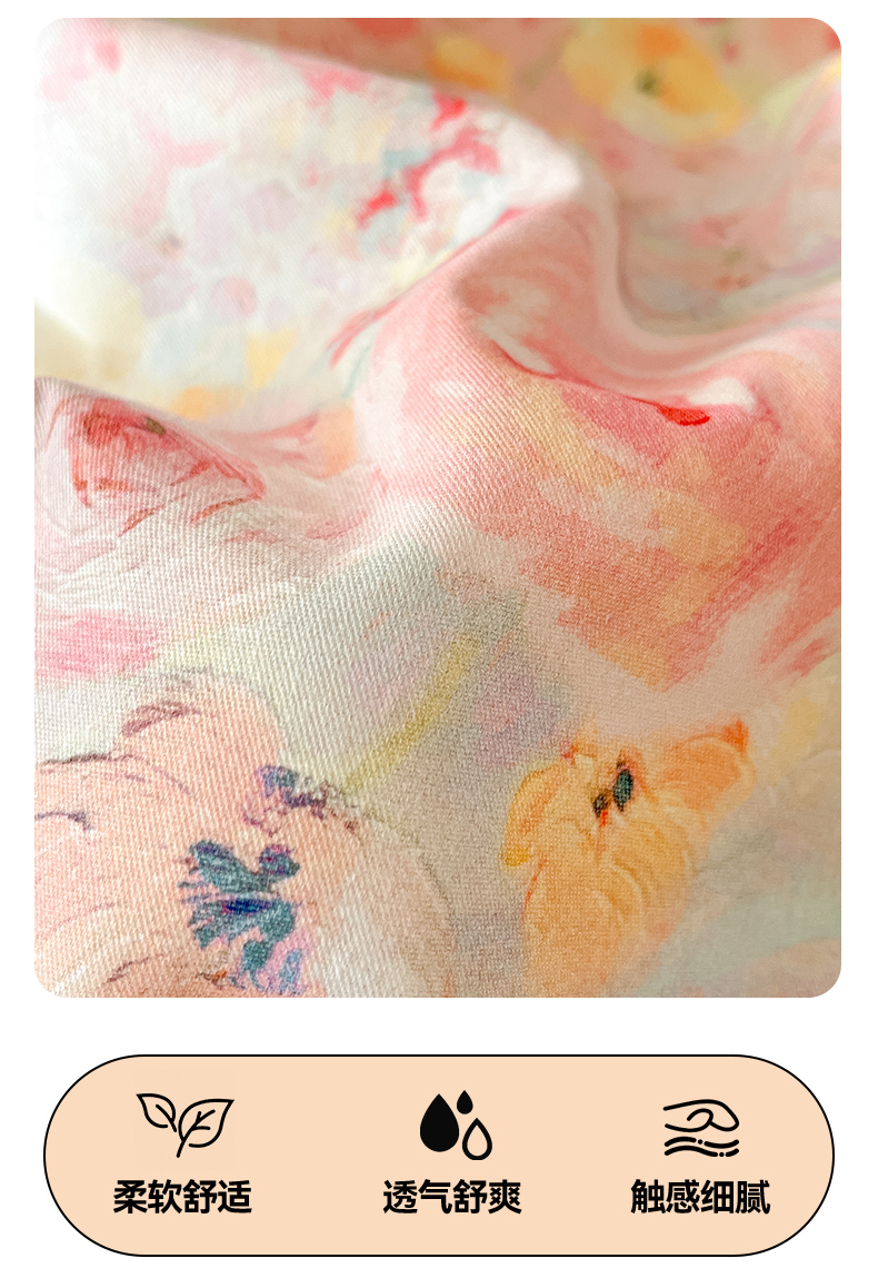 (总)睡美美家纺 2026新款水洗云朵棉亲肤花边款四件套,岛屿,蝴蝶,花序,花影,桃枝,田园,小碎花,星星人