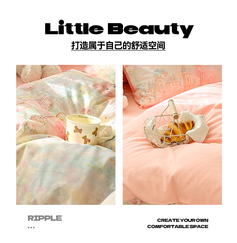 (总)睡美美家纺 2026新款A类古法水洗棉法式花边四件套,彩虹小马,春日絮语,春野,粉豹纹,粉雾蔷薇,粉漾,格纹小象,海盐奶酪,花千朵,花田兔,灰棠,剪秋,乐町小马,美式,梦华录,梦幻格趣,梦幻灰,梦露,木马乐园,奶萌喵咖,南瓜童话,俏皮狗,青花瓷,赛琳娜,森屿,疏影,水晶葡萄,甜粉小窝,甜心萌宠,小黄花,小幸运-蓝,絮语,鱼多多