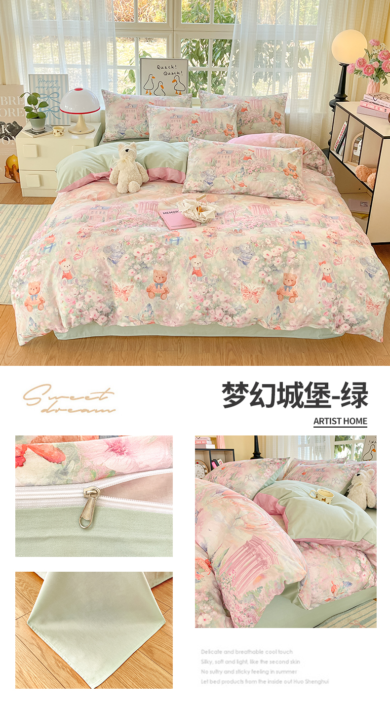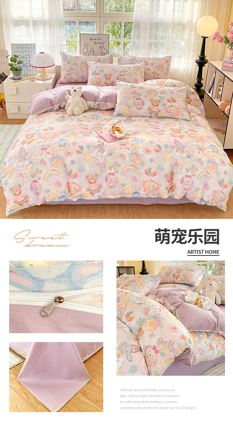 (总)睡美美家纺 2026新款13070数码印花全棉纯棉动物卡通三件套四件套,动物派对,萌宠乐园,梦幻城堡-绿,梦幻城堡-粉,花车小熊-蓝,洛克庄园,节日狂欢,花车小熊-紫,木马小象,人鱼公主,熊仔的玫瑰园,悠悠花园