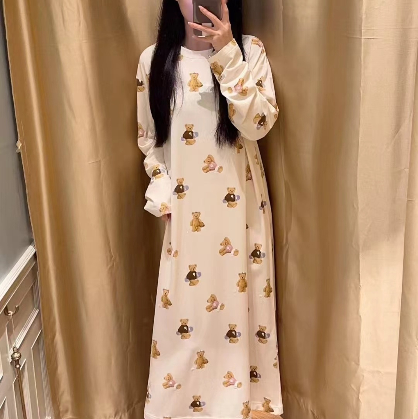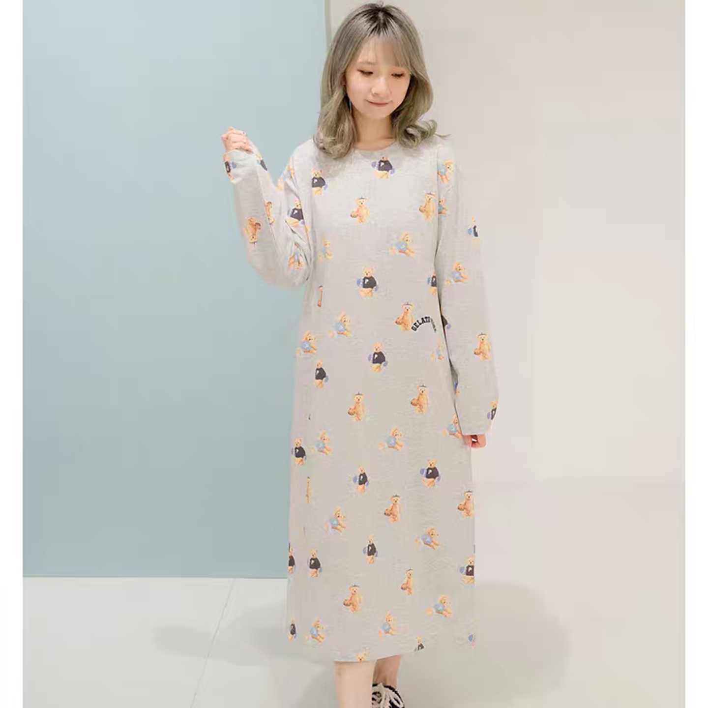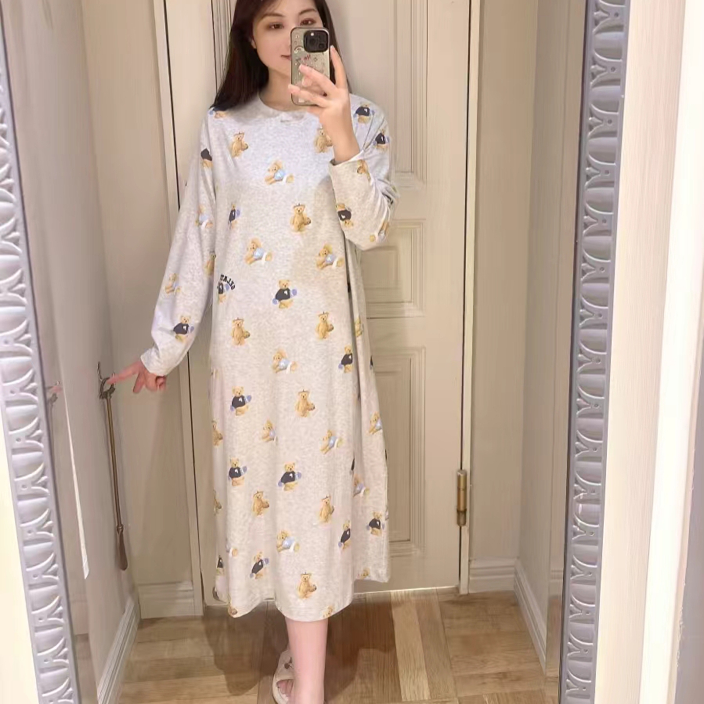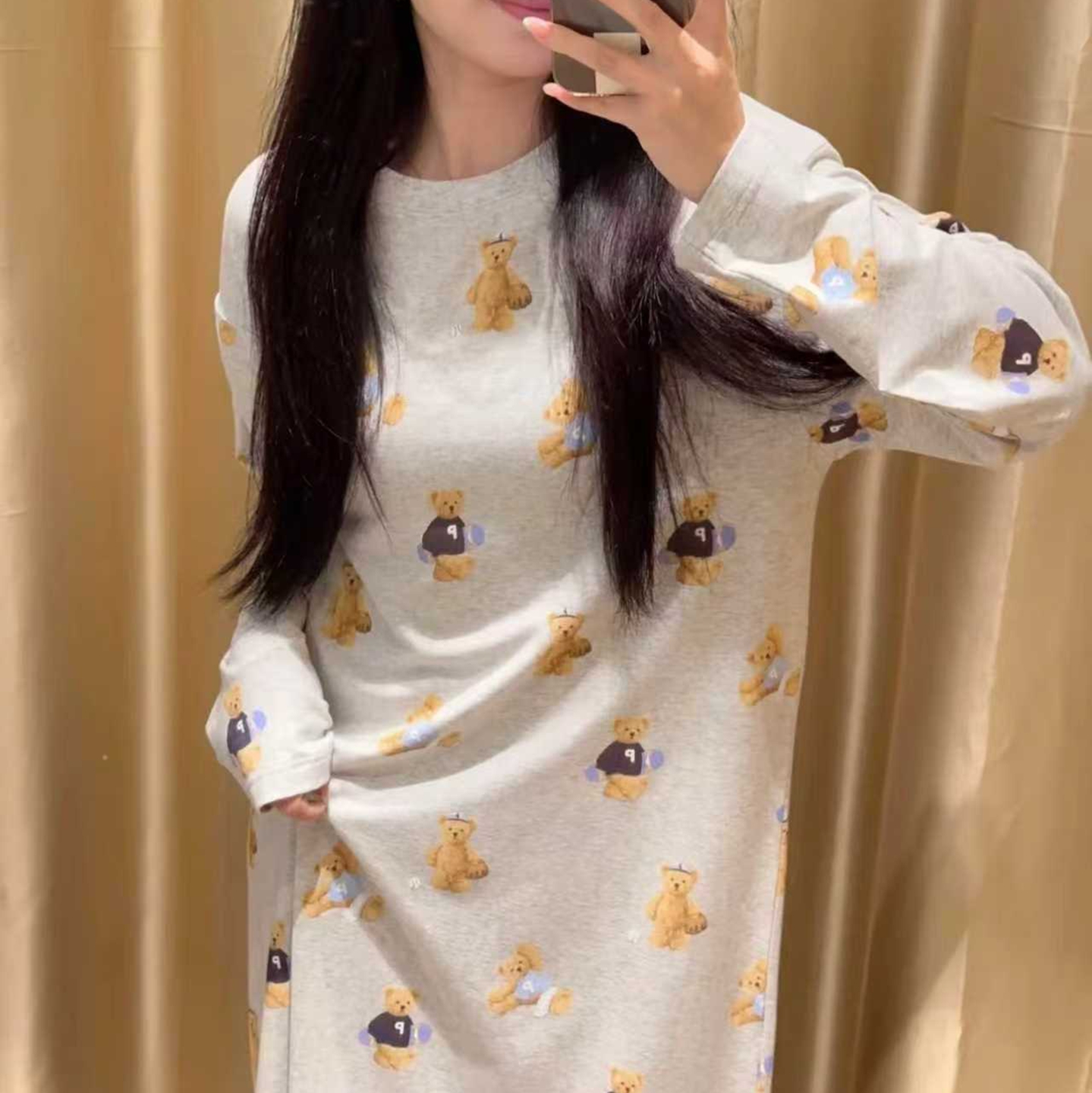 当前位置: 91家纺网 > 商品网购 > 居家日用 > 睡衣/家居服套装 > 妍景家居生活馆 2026新款满印运动小熊睡裙 灰色